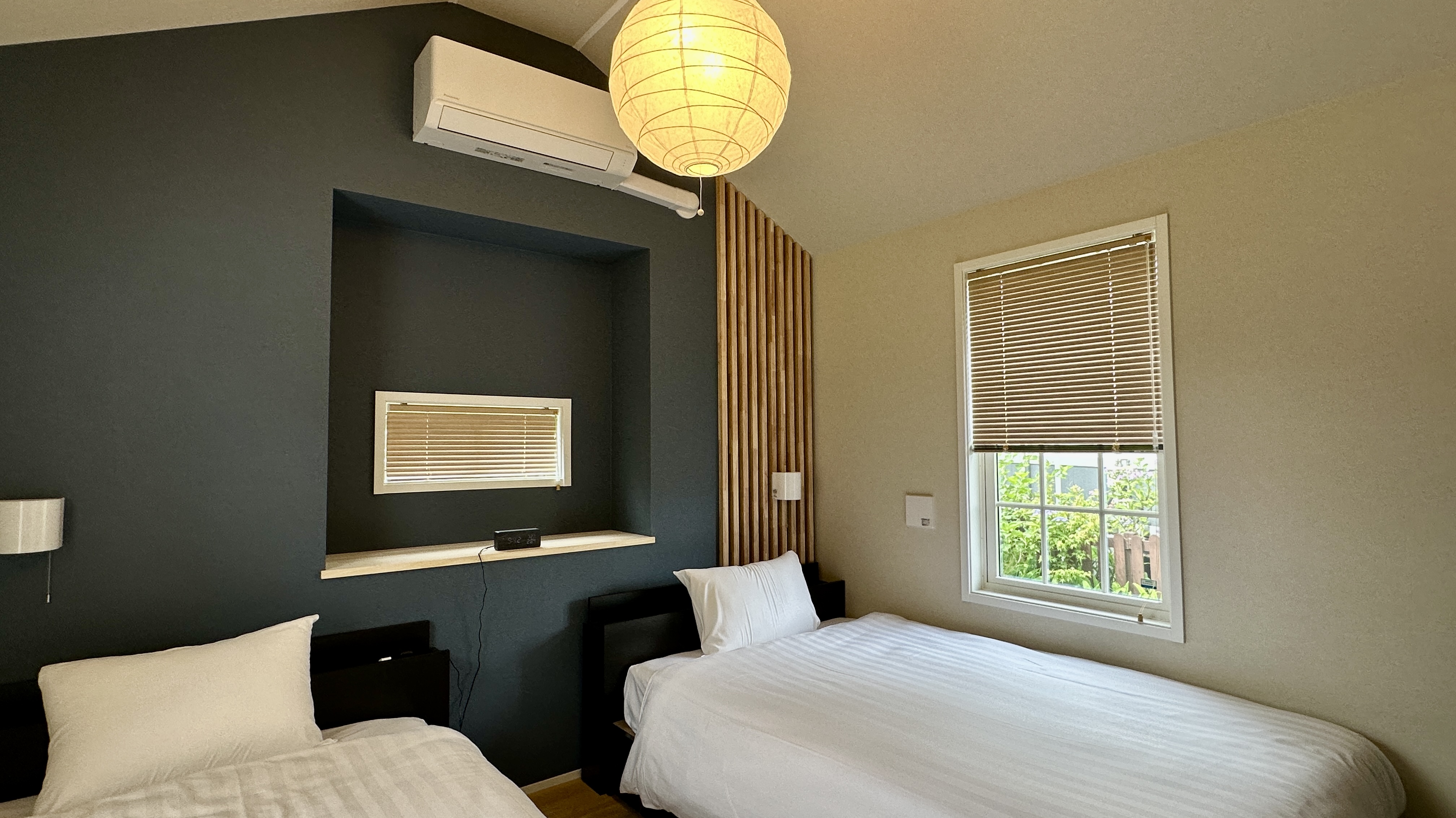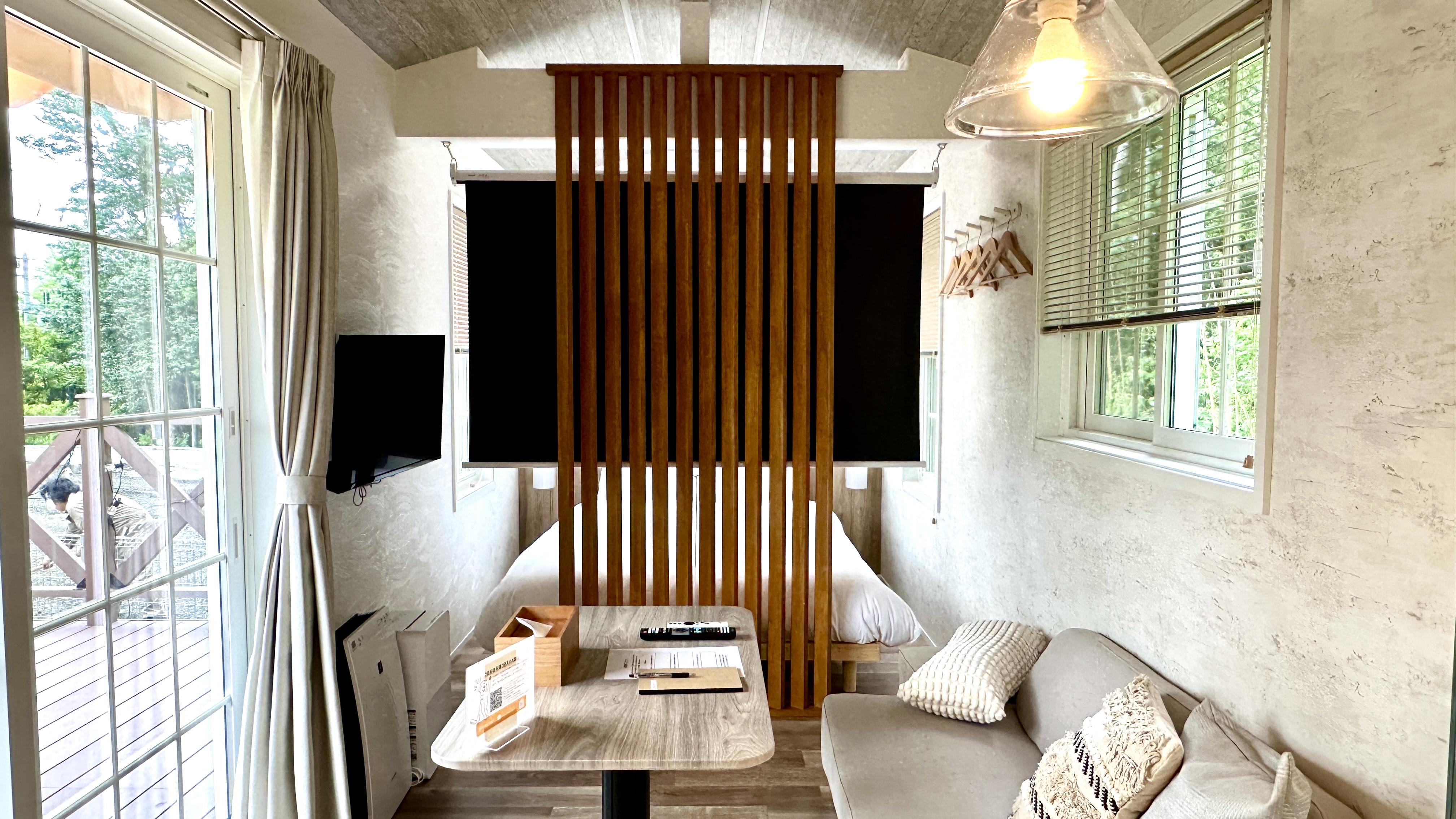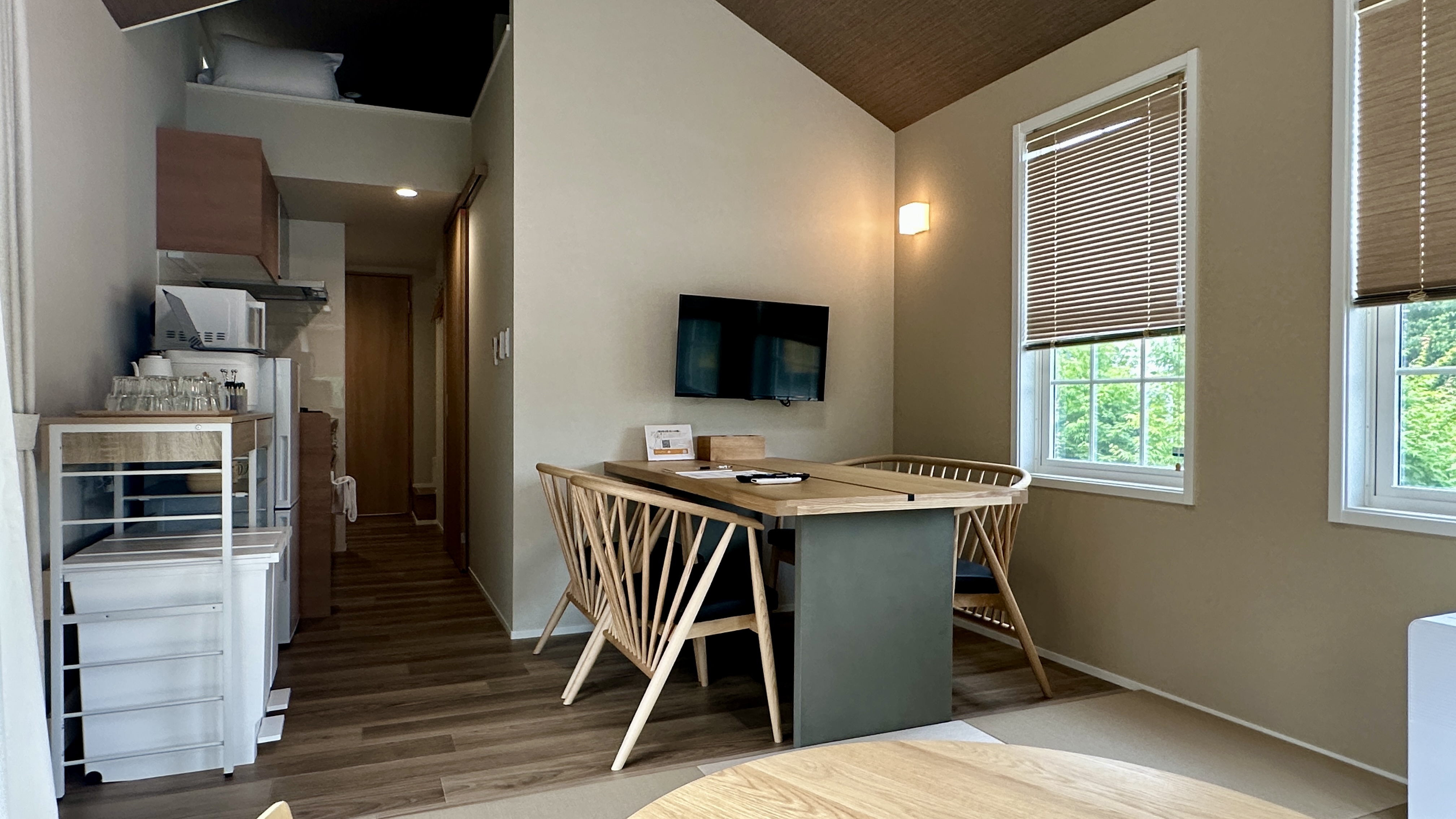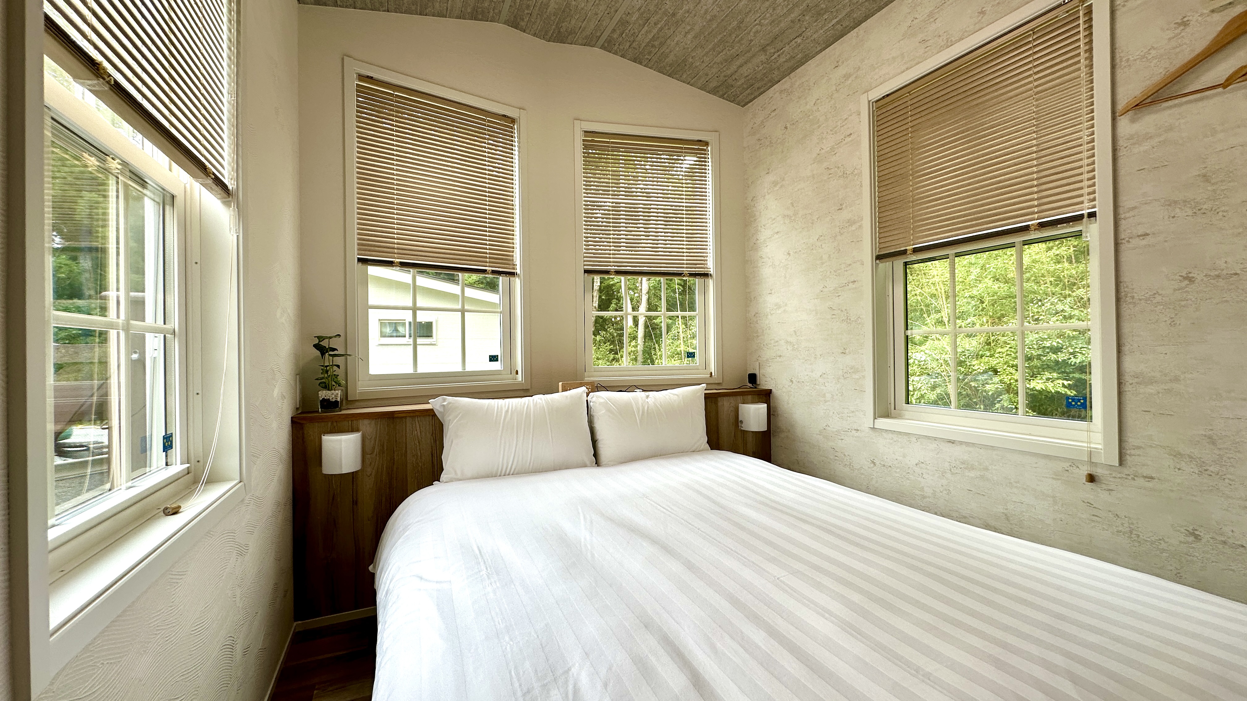 4月から5月にかけて、南方から富士山麓に渡来する夏鳥、「鶫」。森の静けさに誘われて、鶫がそっと羽を休めに来るようなお部屋に仕上げました。木のぬくもりとやわらかな光に包まれた、心ほどけるひとときをお過ごしください。 ※浴槽はございません