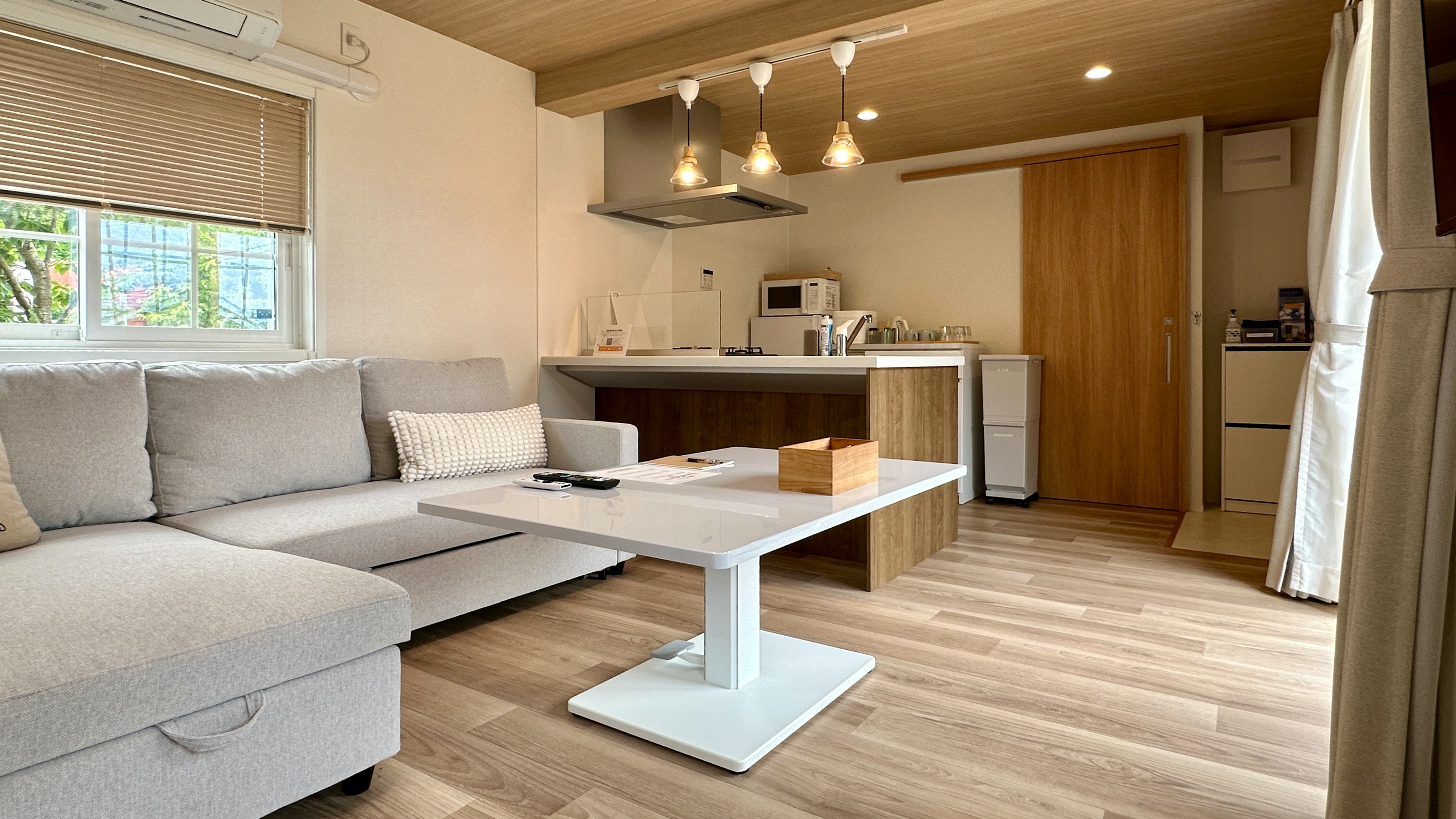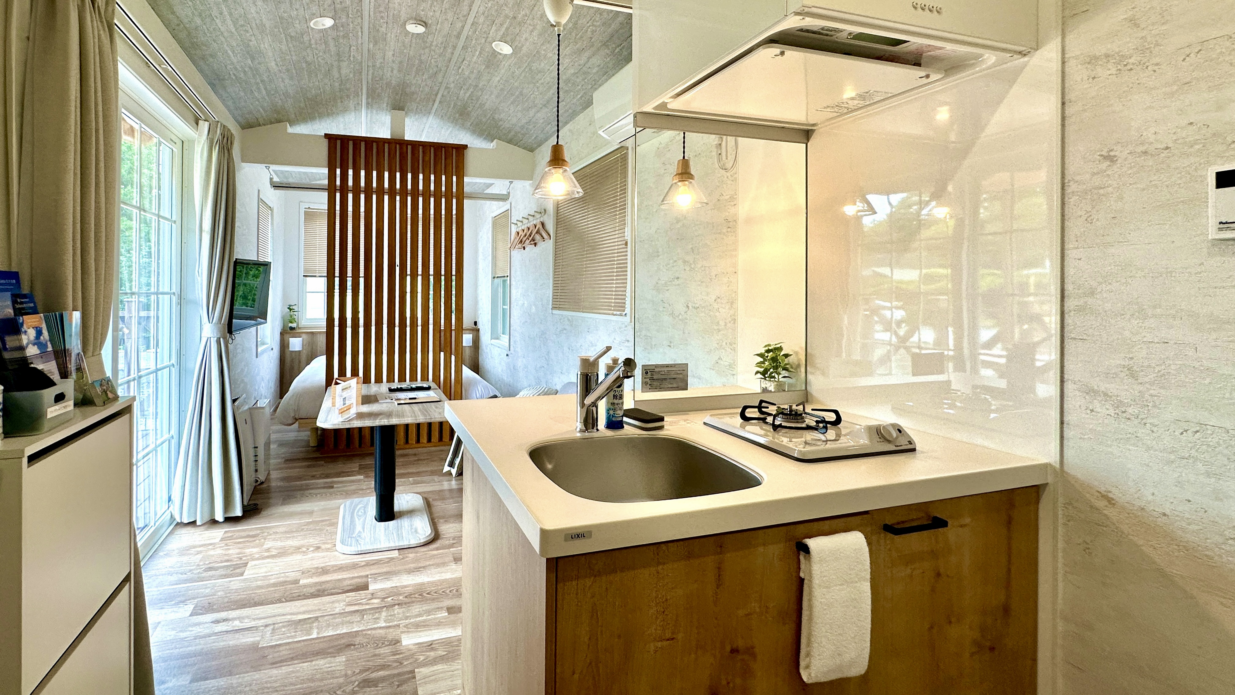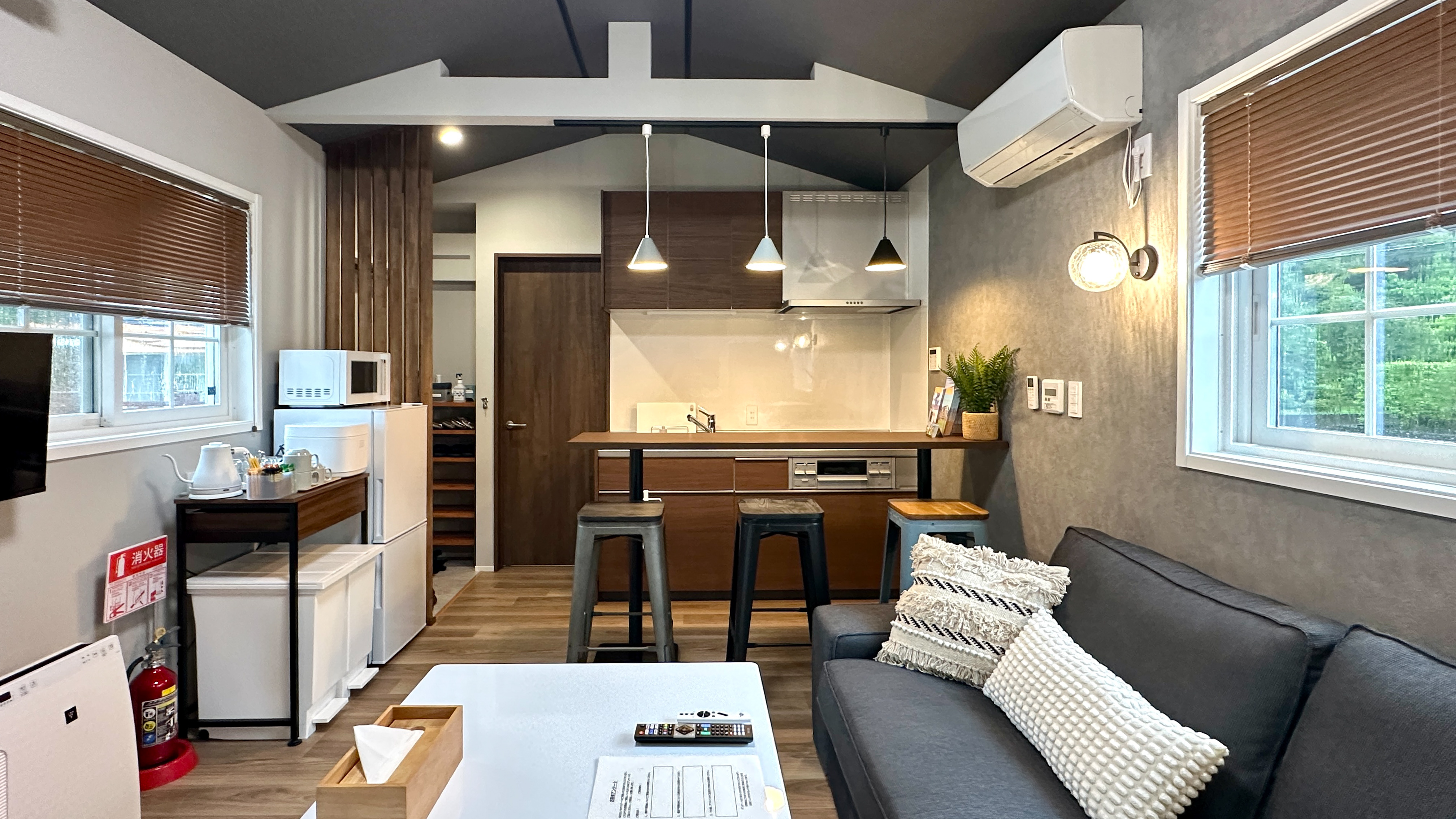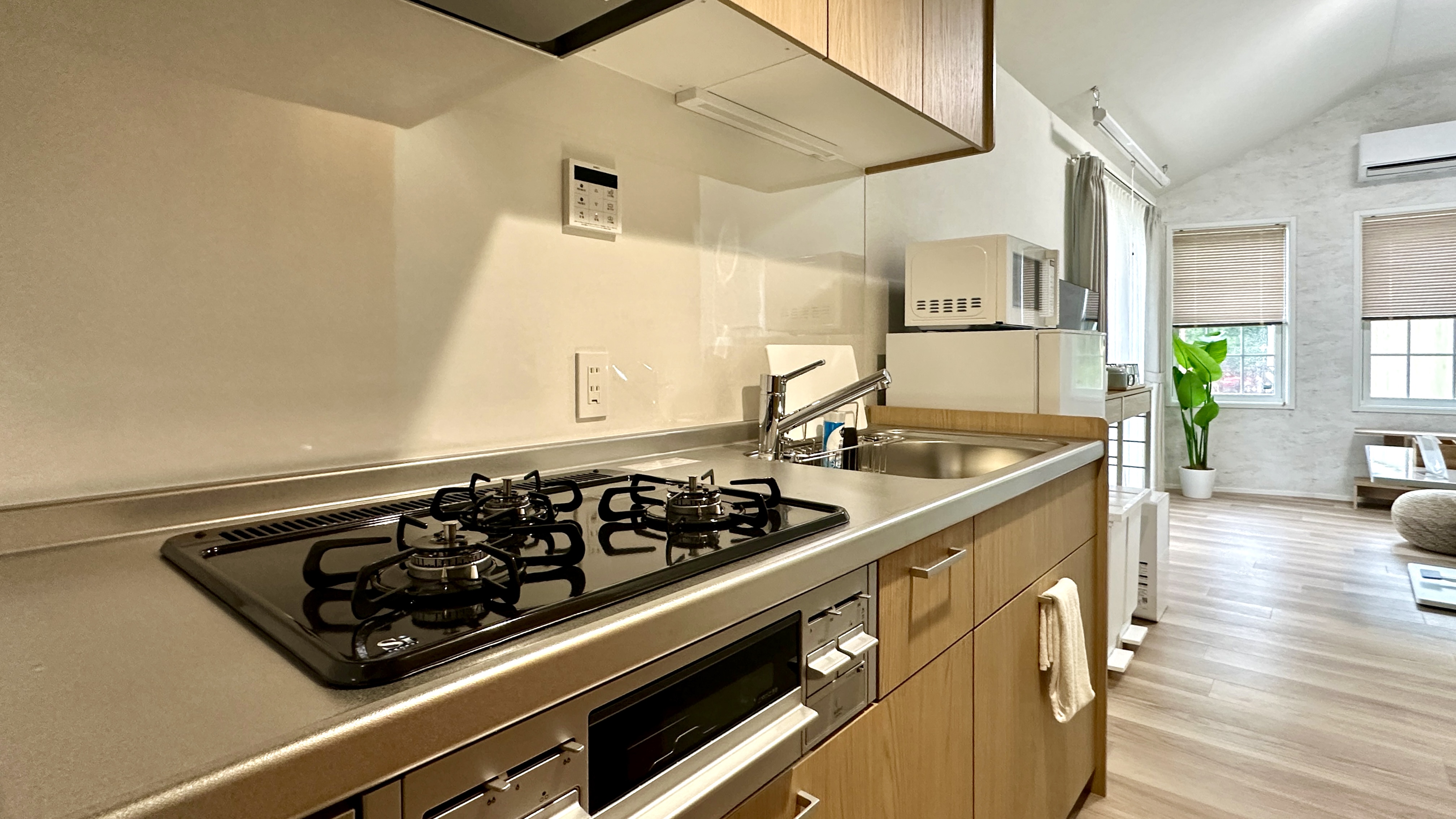 | 設備 | 冷蔵庫・テレビ・ガス式BBQグリル・炊飯器・レンジ ・ケトル・鍋・フライパン・加湿空気清浄機・電気ヒーター・ハンガーラック・プロジェクター・食器用洗剤・掃除用具・ラップ・アルミホイル・食器・子供用食器・カトラリー・傘・消臭スプレー・虫よけ・グラス・マグカップ・トング・おたま・フライ返し・菜箸・キッチンバサミ・ピーラー・缶切り栓抜き・水切り籠・包丁・まな板・ボウル・ザル・鍋つかみ・ドライヤー・ストレートアイロン |