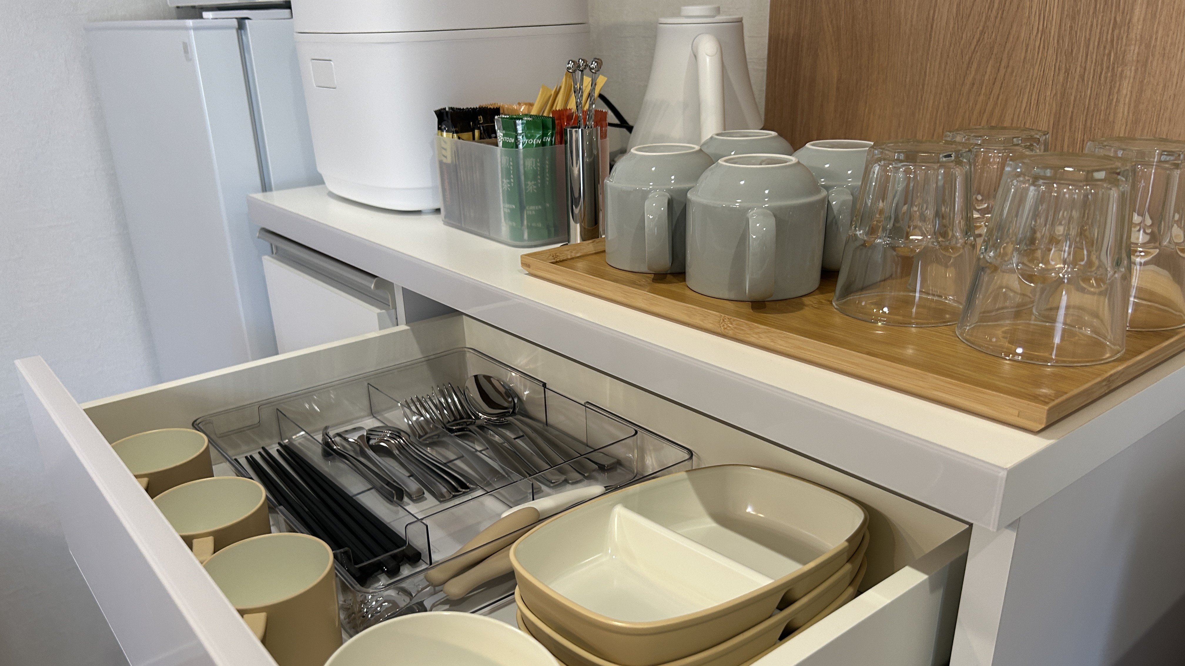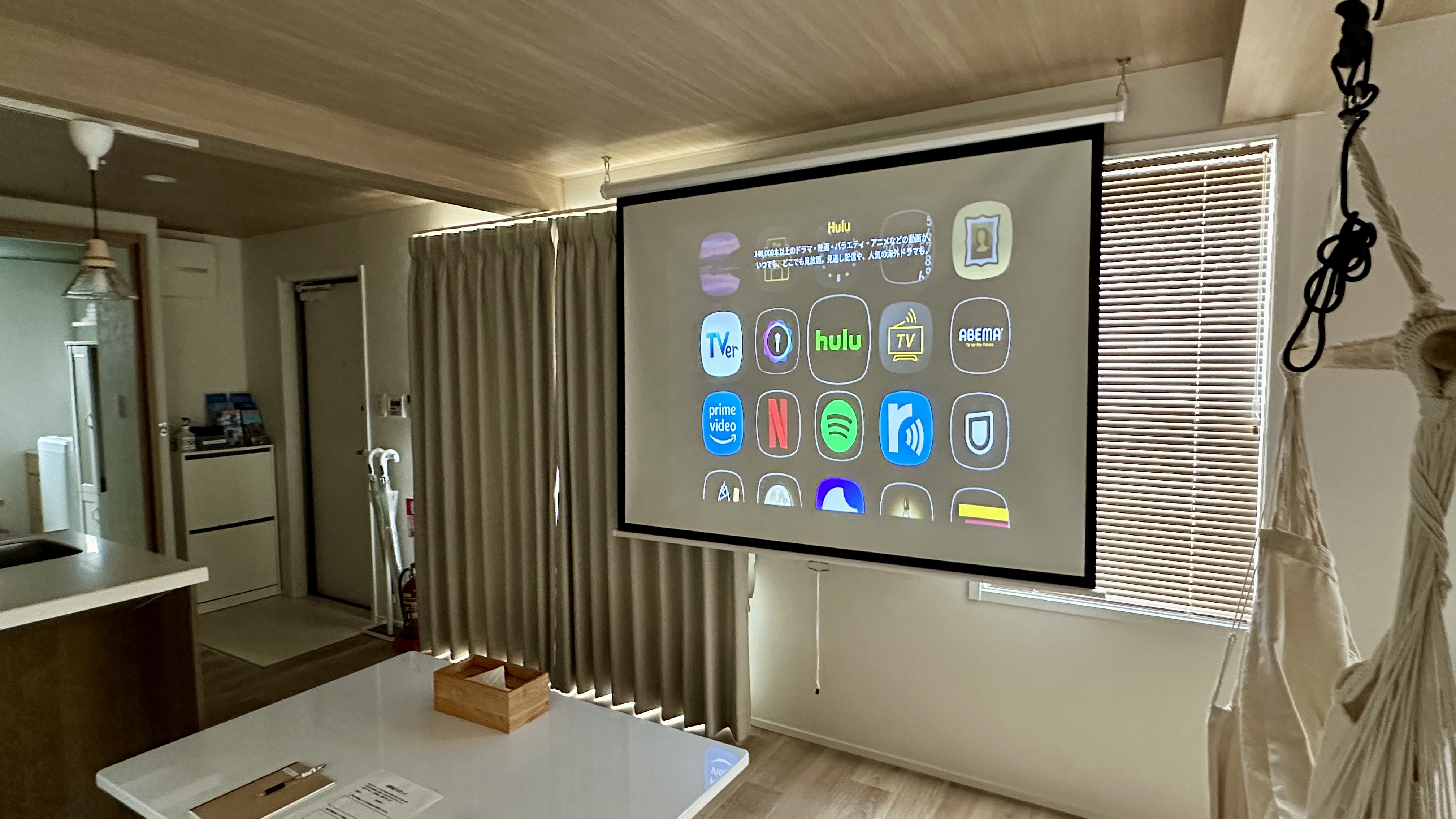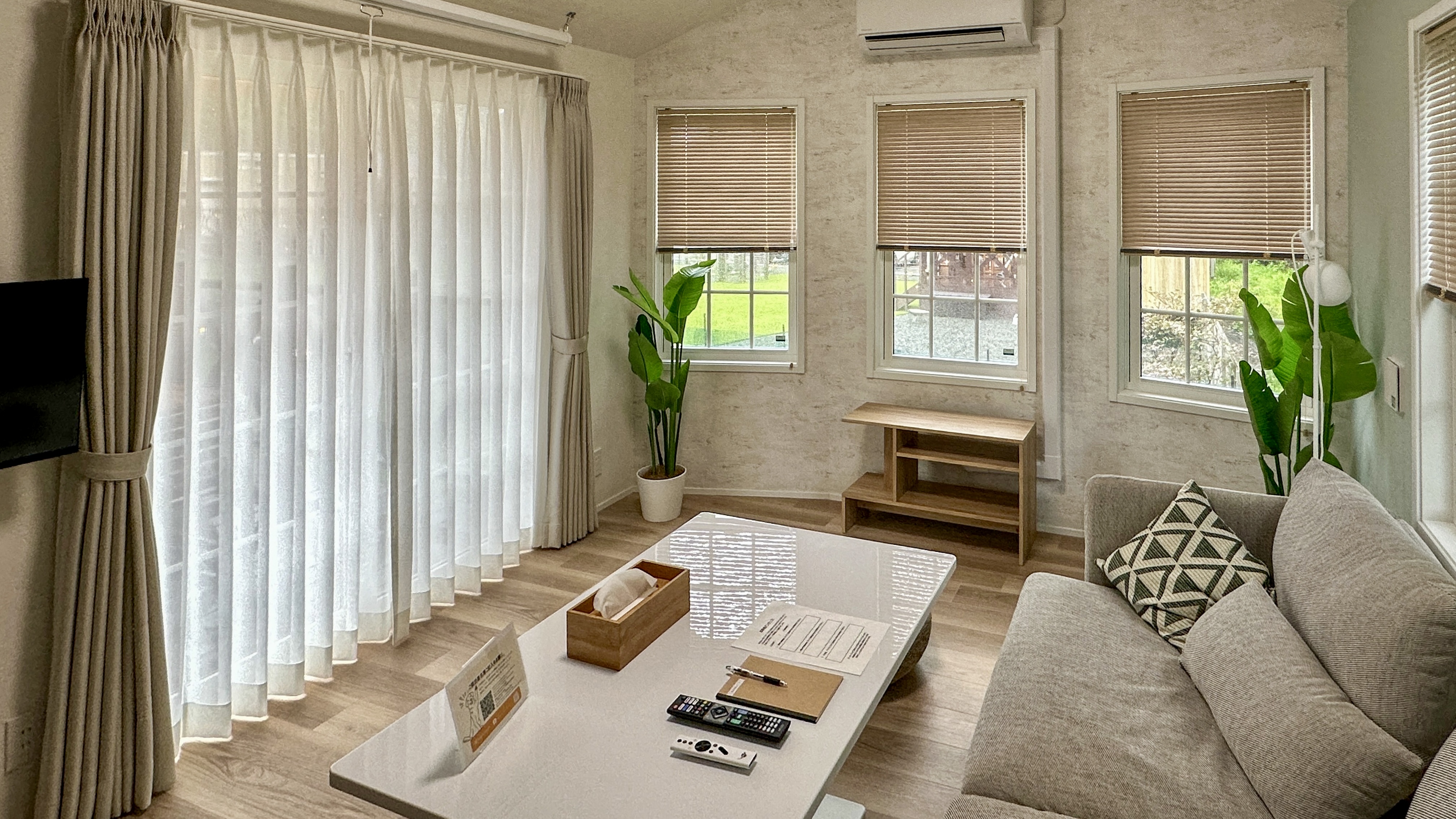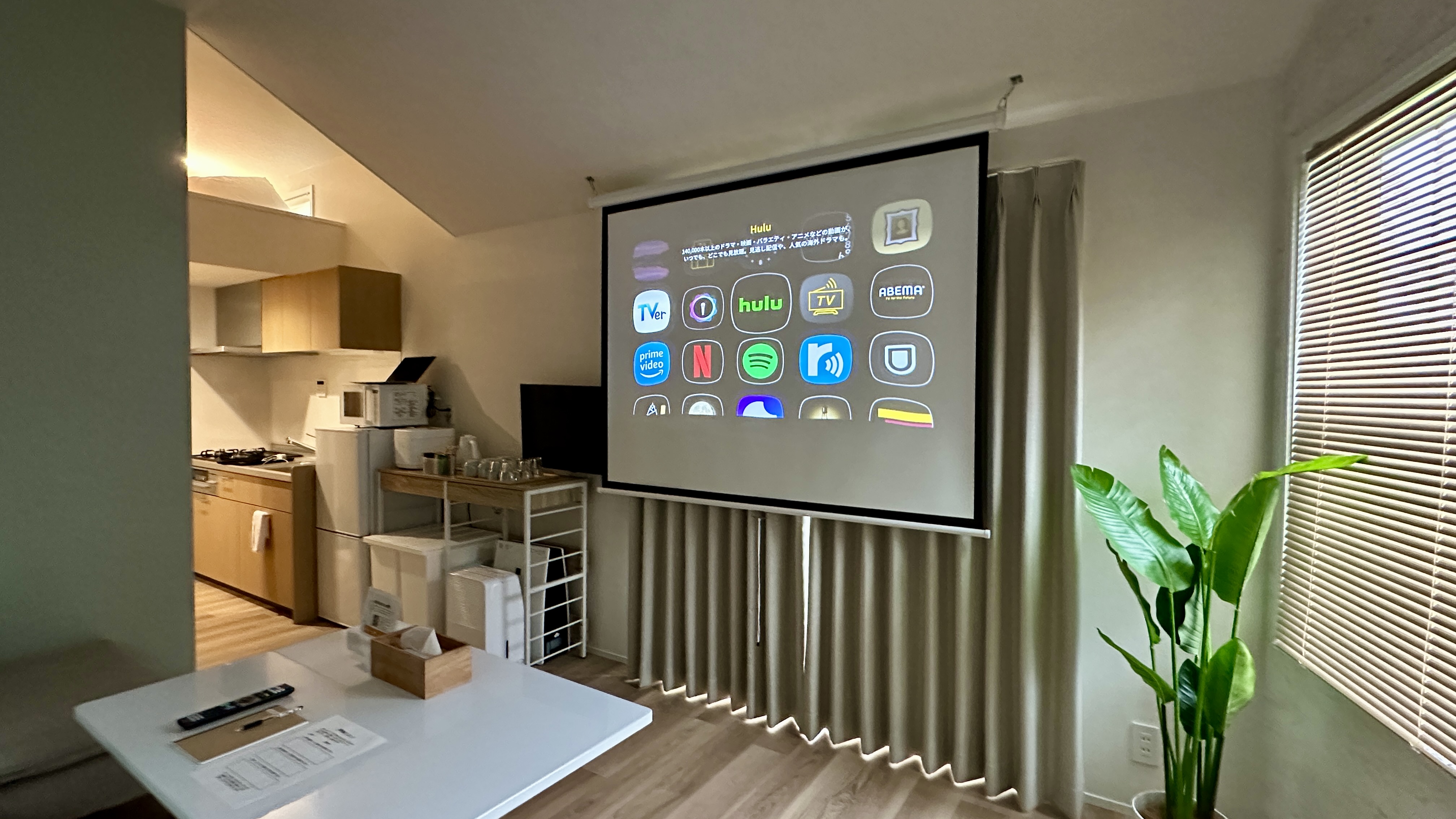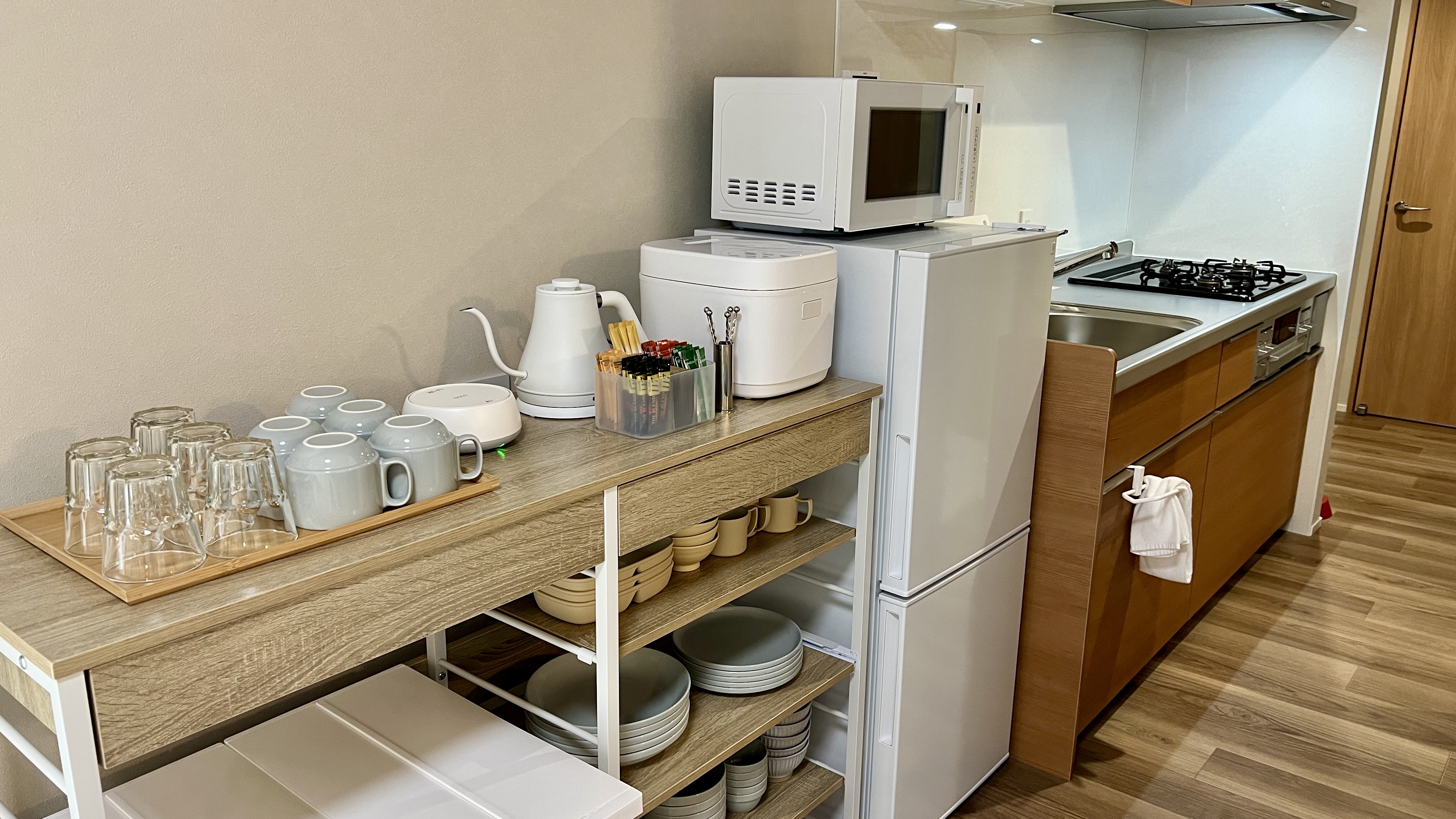 | 設備 | 冷蔵庫・テレビ・ガス式BBQグリル・炊飯器・レンジ ・ケトル・鍋・フライパン・加湿空気清浄機・電気ヒーター・ハンガーラック・プロジェクター・食器用洗剤・掃除用具・ラップ・アルミホイル・食器・子供用食器・カトラリー・傘・消臭スプレー・虫よけ・グラス・マグカップ・トング・おたま・フライ返し・菜箸・キッチンバサミ・ピーラー・缶切り栓抜き・水切り籠・包丁・まな板・ボウル・ザル・鍋つかみ・ドライヤー・ストレートアイロン |