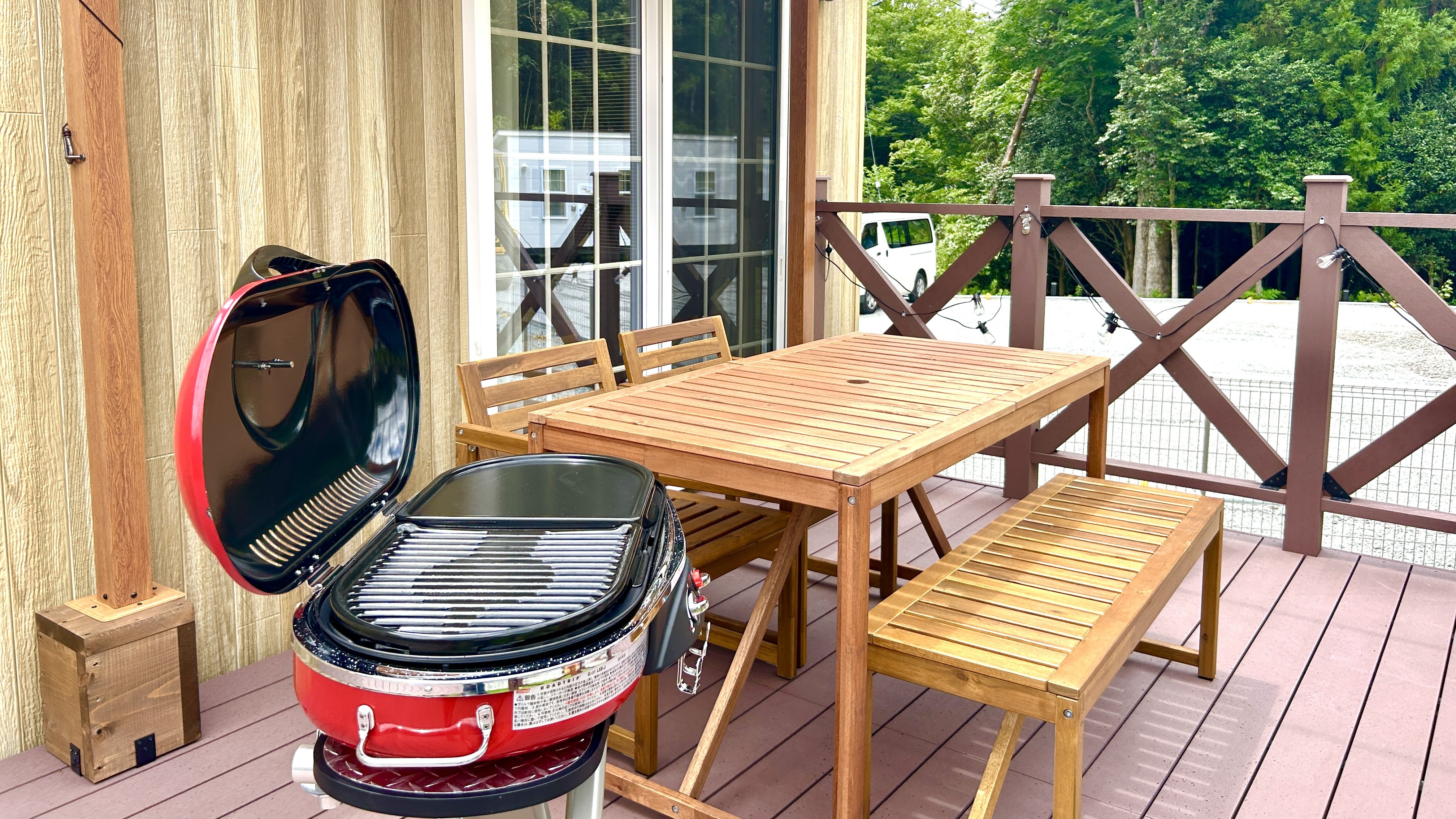 ガス式BBQグリルを各お部屋に設置しております。