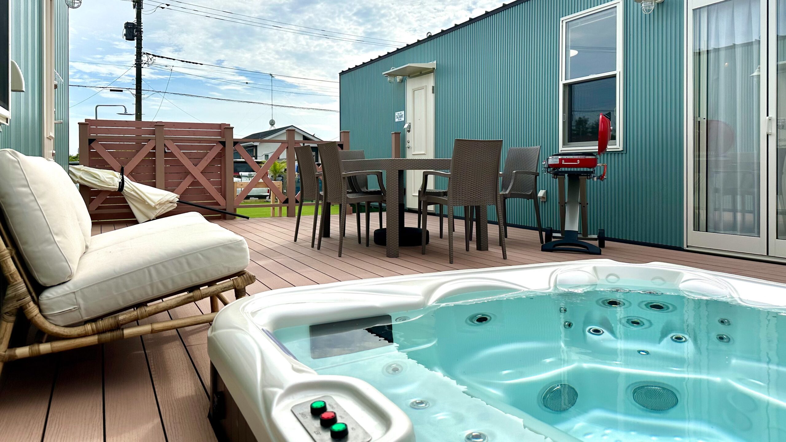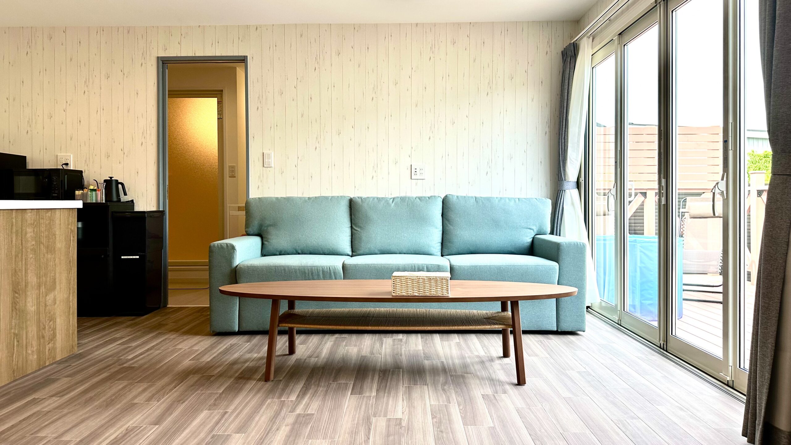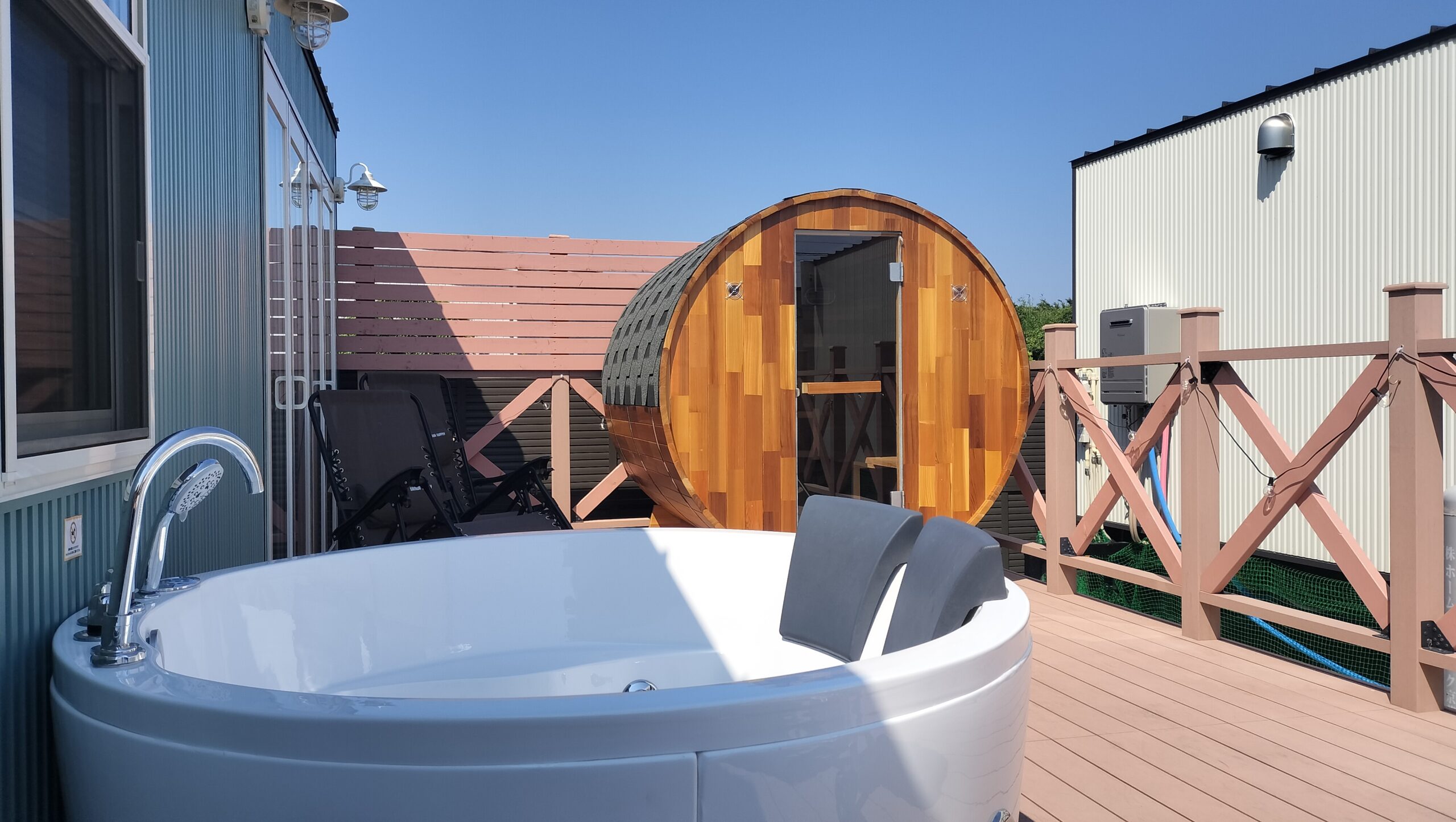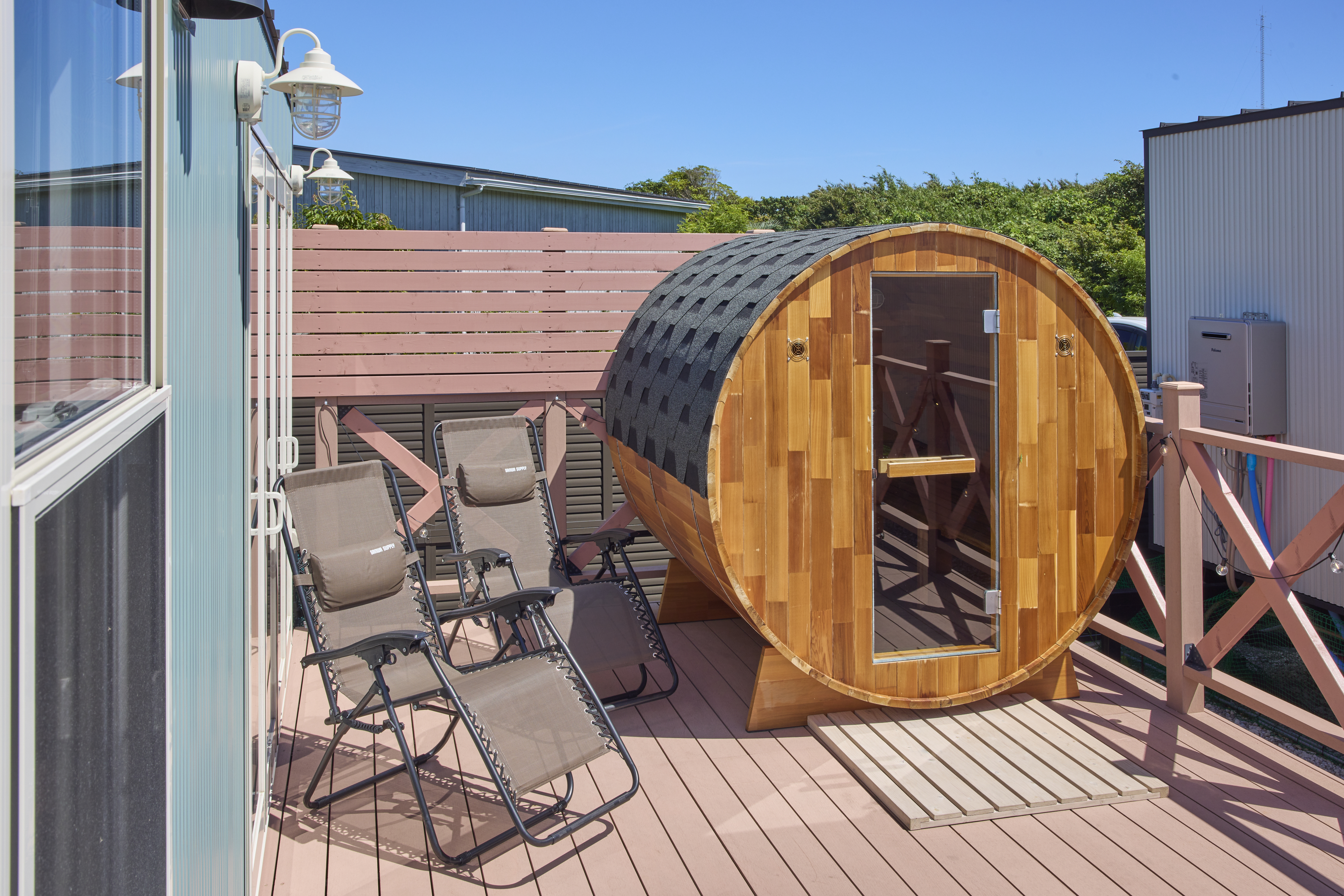 西海岸の雰囲気を感じられるお部屋 リビングと寝室が区切られているため、リラックスした環境を重視することができます。 テントサウナとジャグジーが付いています。 水着の持参をお願いしております。
