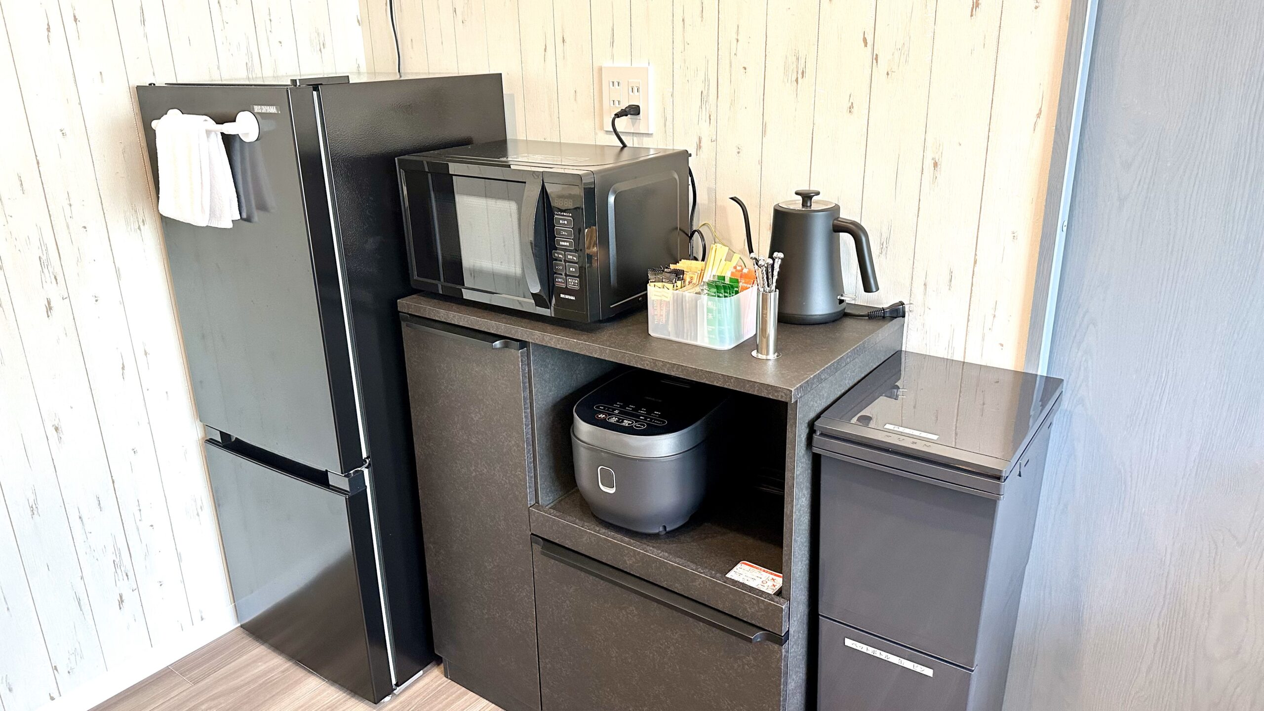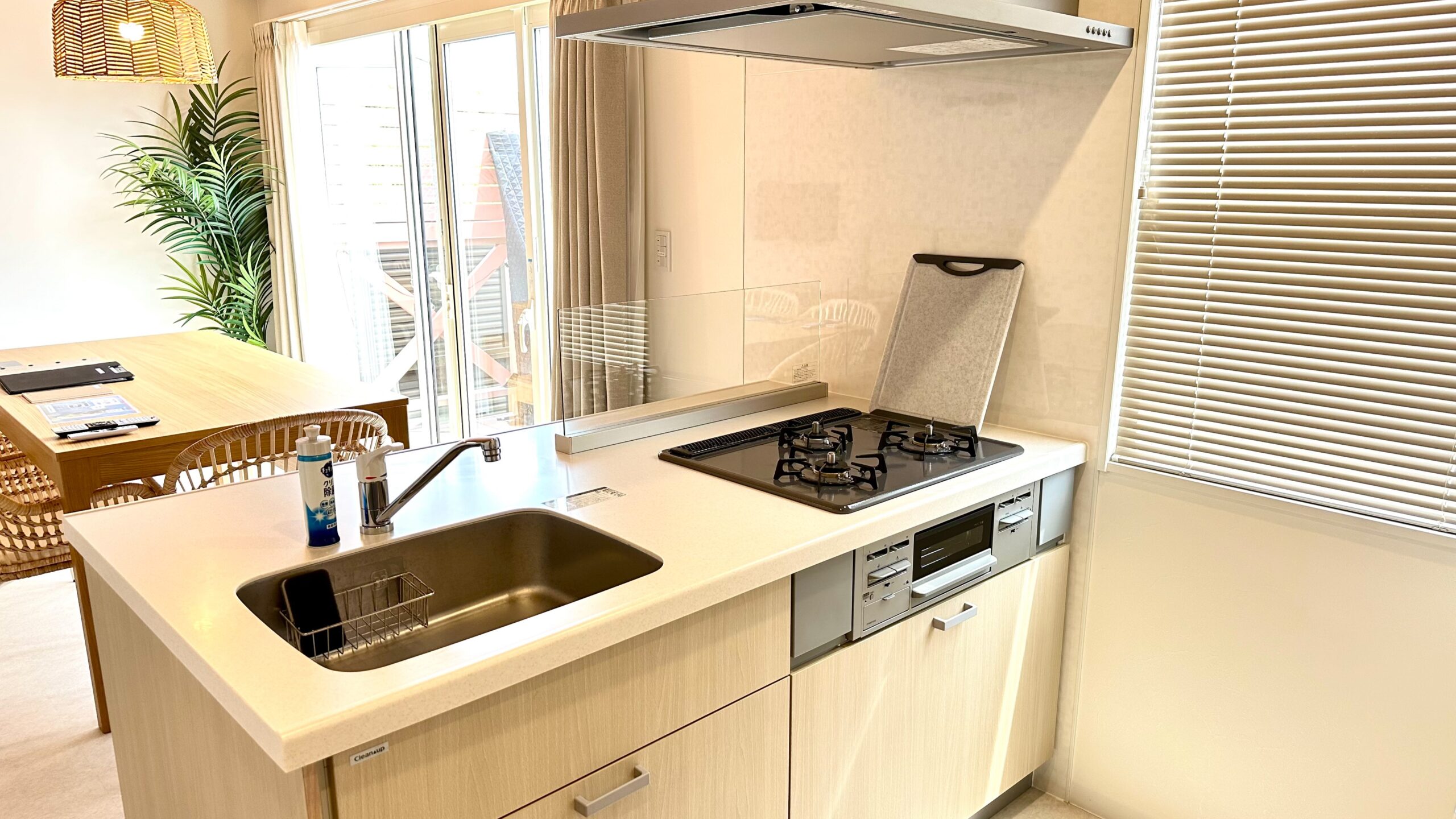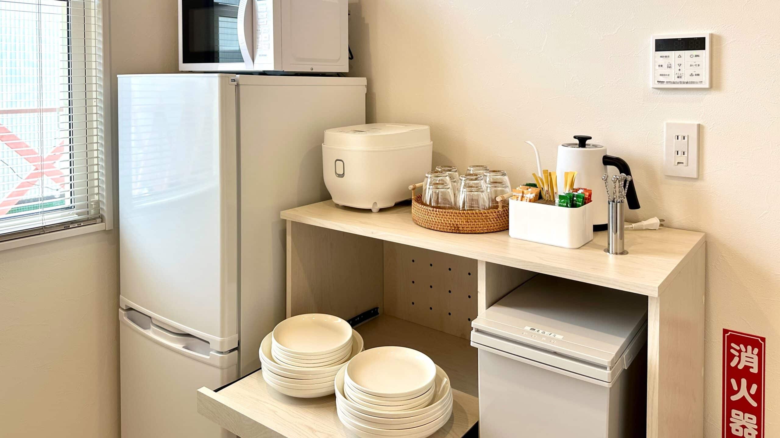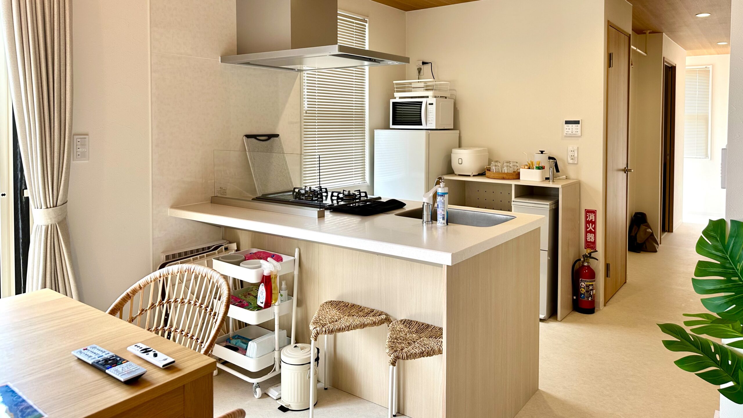 | 設備 | 冷蔵庫・洗濯機・液晶テレビ・ガス式BBQグリル・炊飯器・レンジ ・ケトル・ホットプレート・フライパン・鍋・加湿空気清浄機・ポップインアラジン ・洗濯洗剤・掃除用具・ラップ・アルミホイル・食器・子供用食器・カトラリー・傘・消臭スプレー・虫よけ・グラス・マグカップ・トング・おたま・フライ返し・菜箸・キッチンバサミ・ピーラー・缶切り栓抜き・水切り籠・包丁・ペティナイフ・まな板・ボウル・ザル・鍋つかみ・ドライヤー・ストレートアイロン |