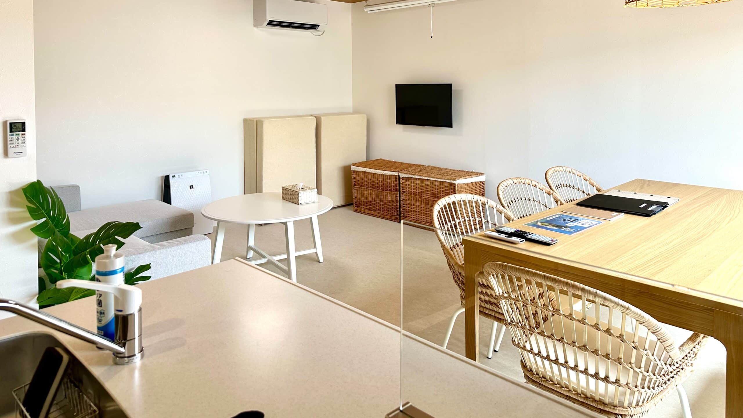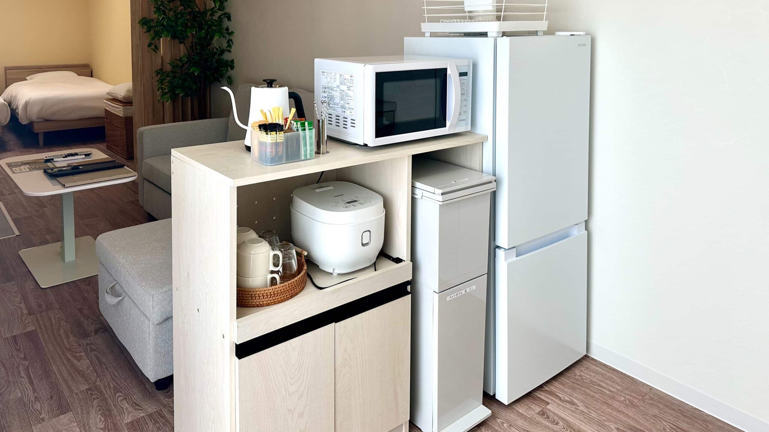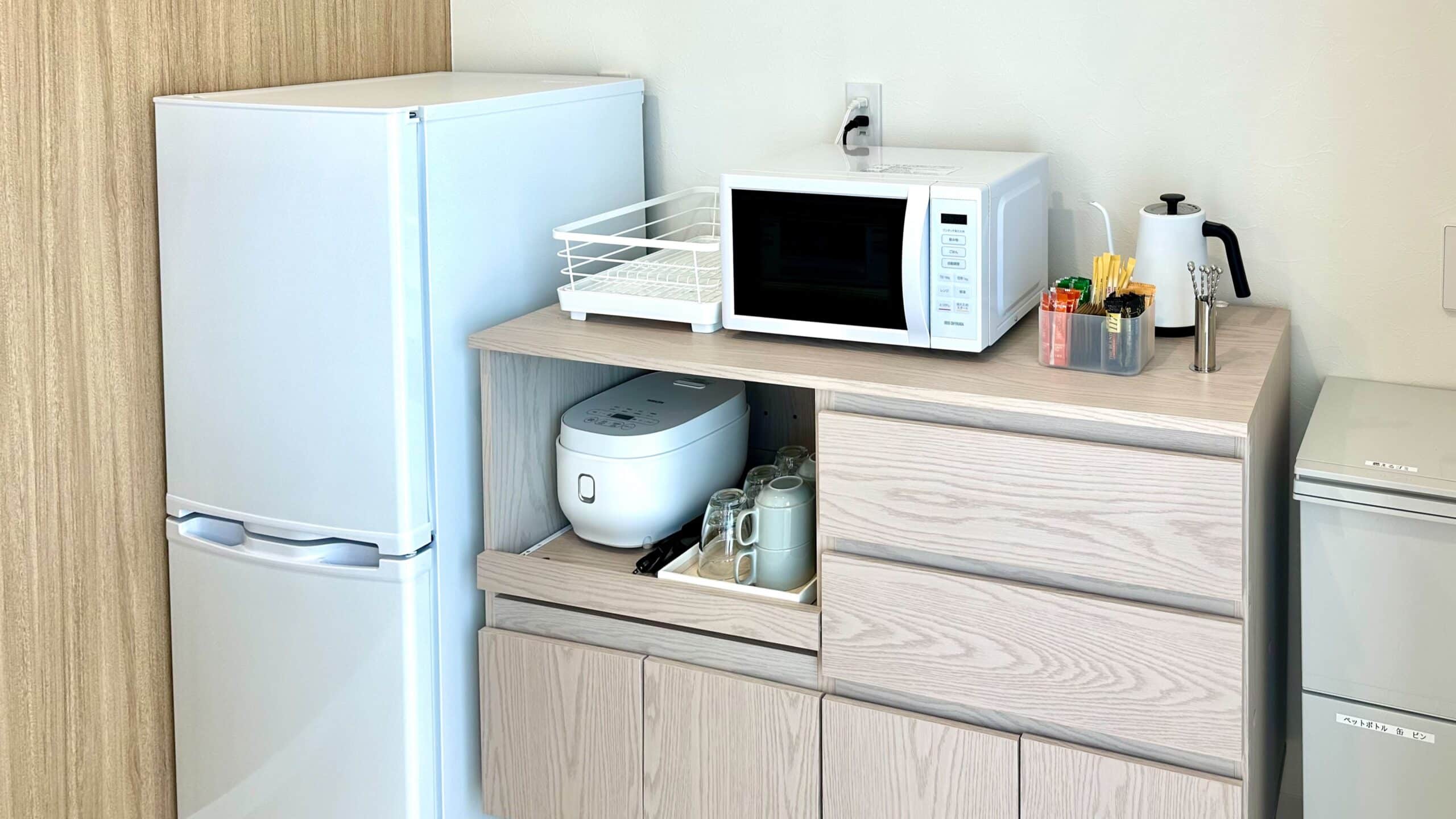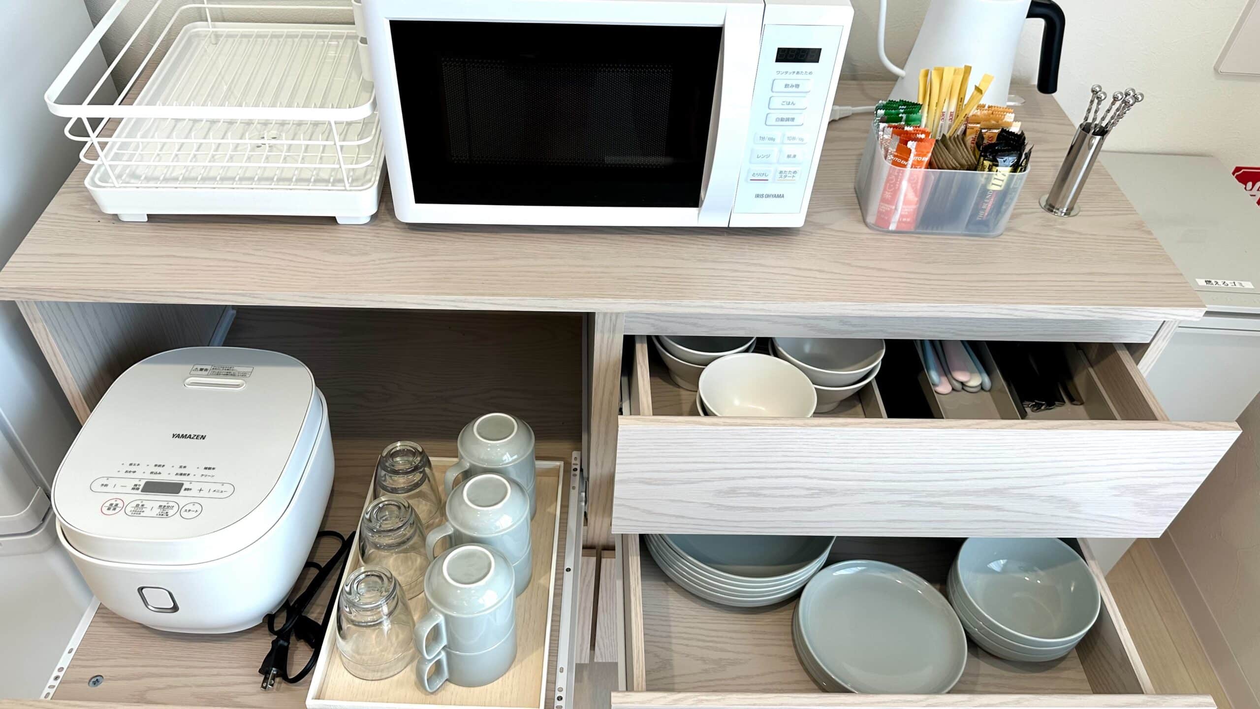 | 設備 | 冷蔵庫・洗濯機・液晶テレビ・ガス式BBQグリル・炊飯器・レンジ ・ケトル・ホットプレート・フライパン・鍋・加湿空気清浄機・ポップインアラジン ・洗濯洗剤・掃除用具・ラップ・アルミホイル・食器・子供用食器・カトラリー・傘・消臭スプレー・虫よけ・グラス・マグカップ・トング・おたま・フライ返し・菜箸・キッチンバサミ・ピーラー・缶切り栓抜き・水切り籠・包丁・ペティナイフ・まな板・ボウル・ザル・鍋つかみ・ドライヤー・ストレートアイロン |