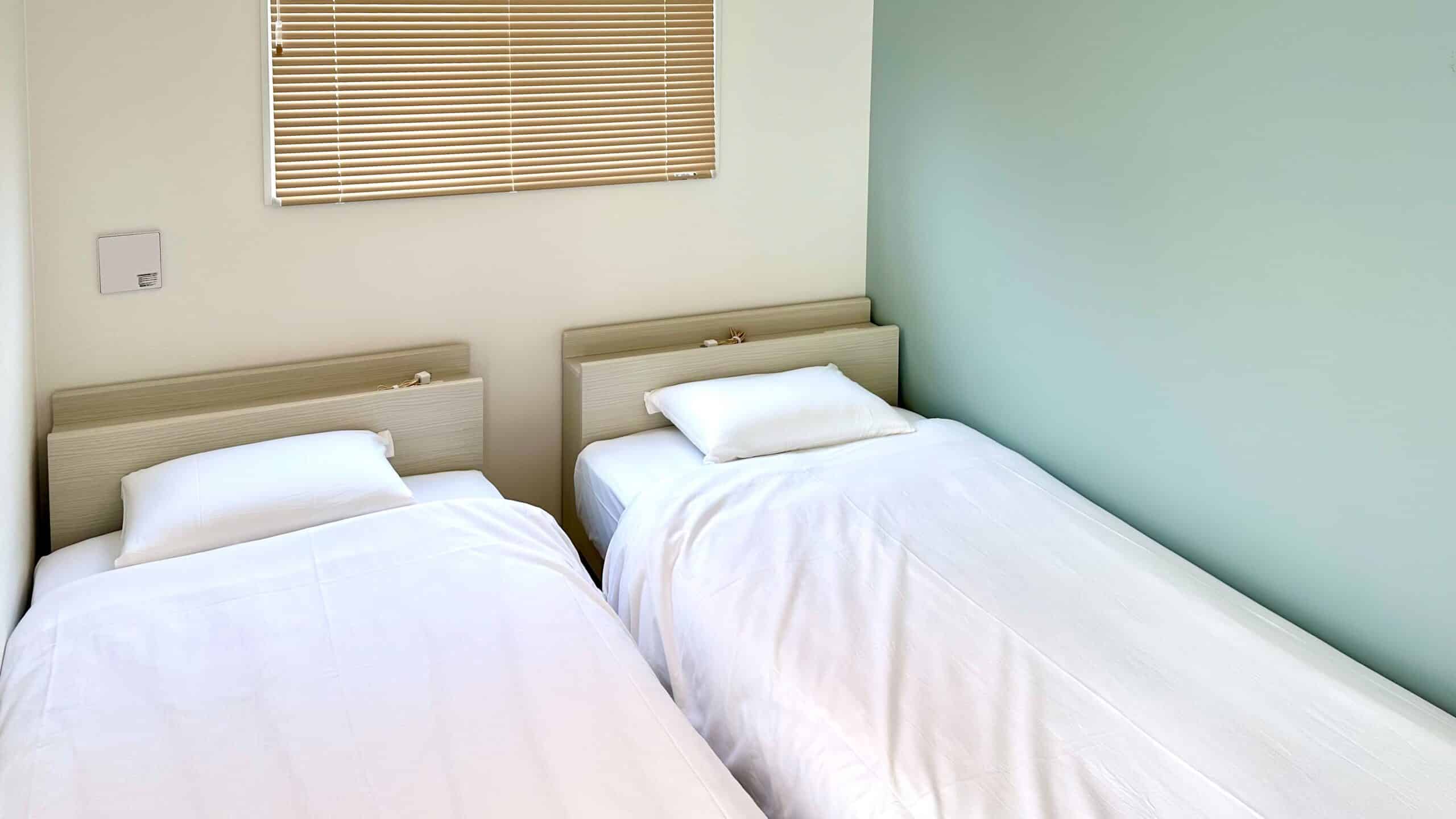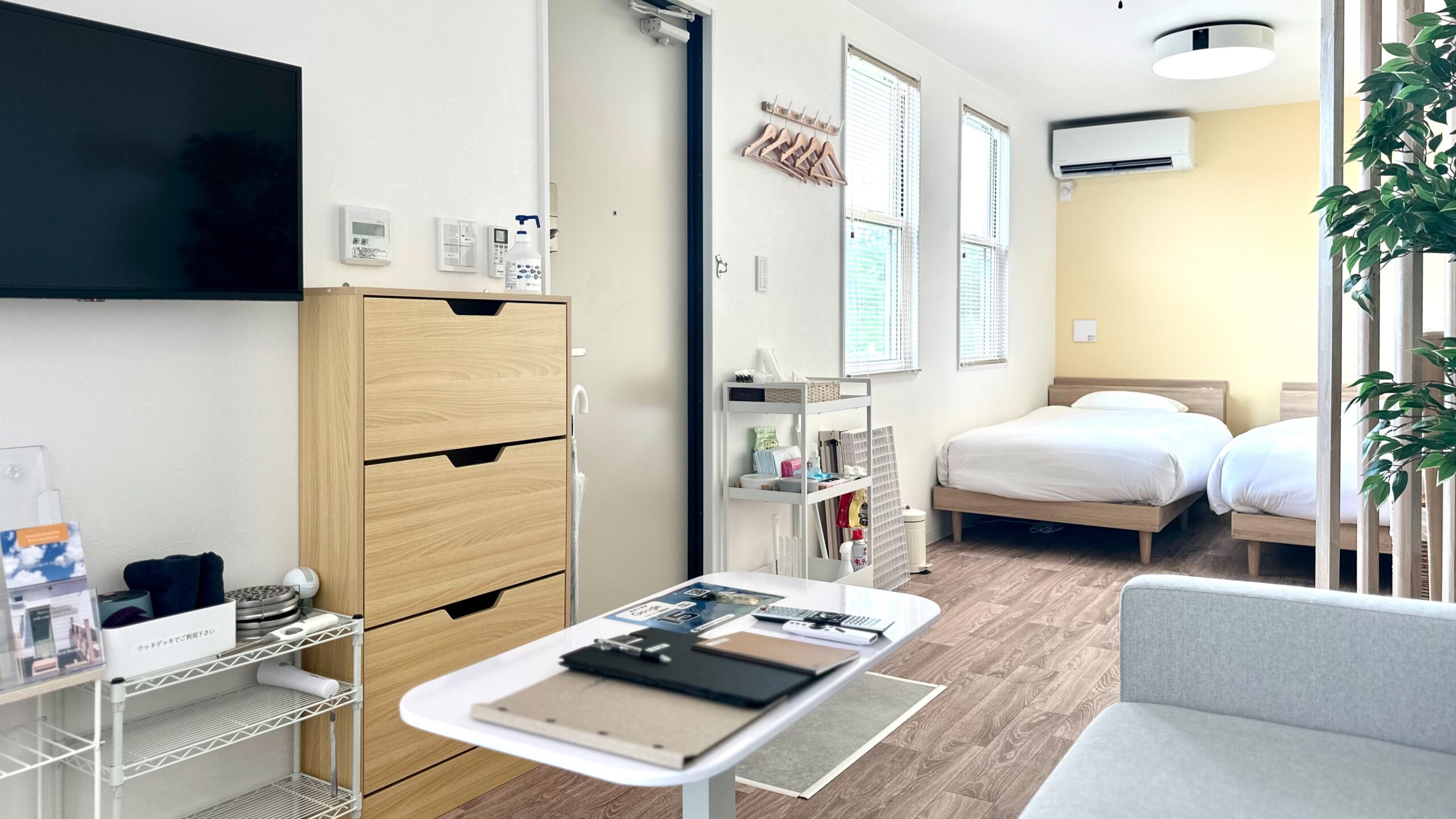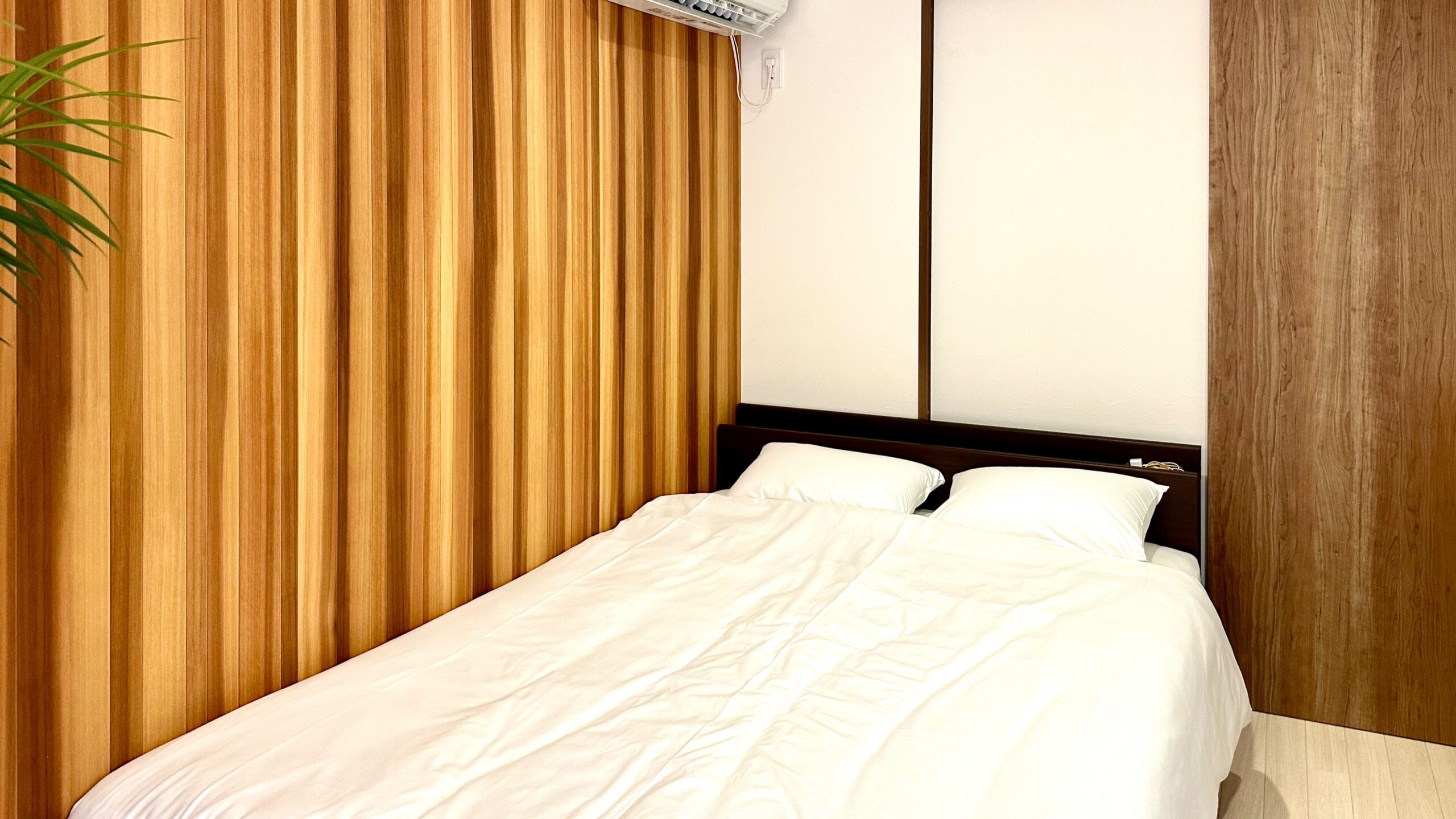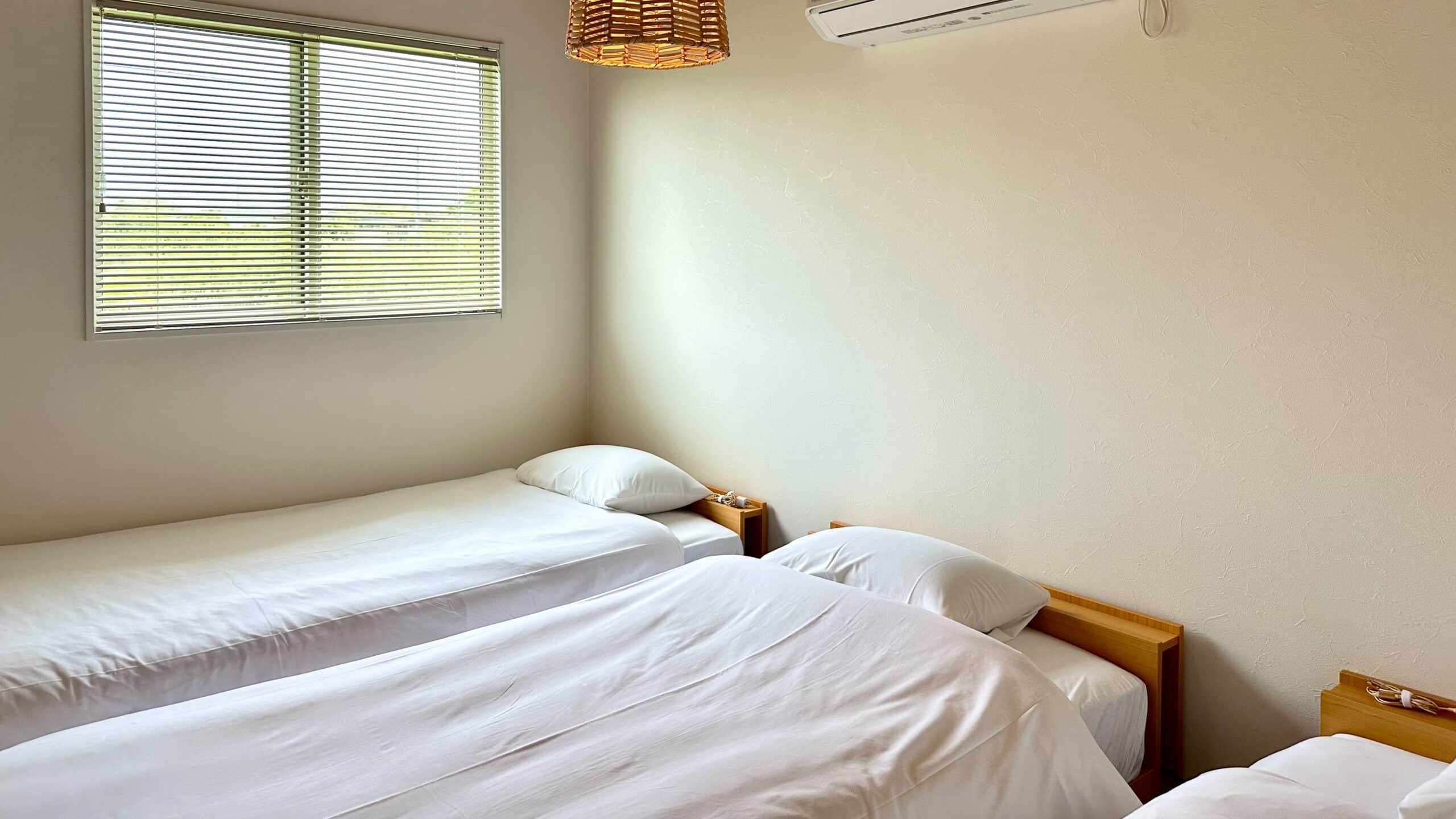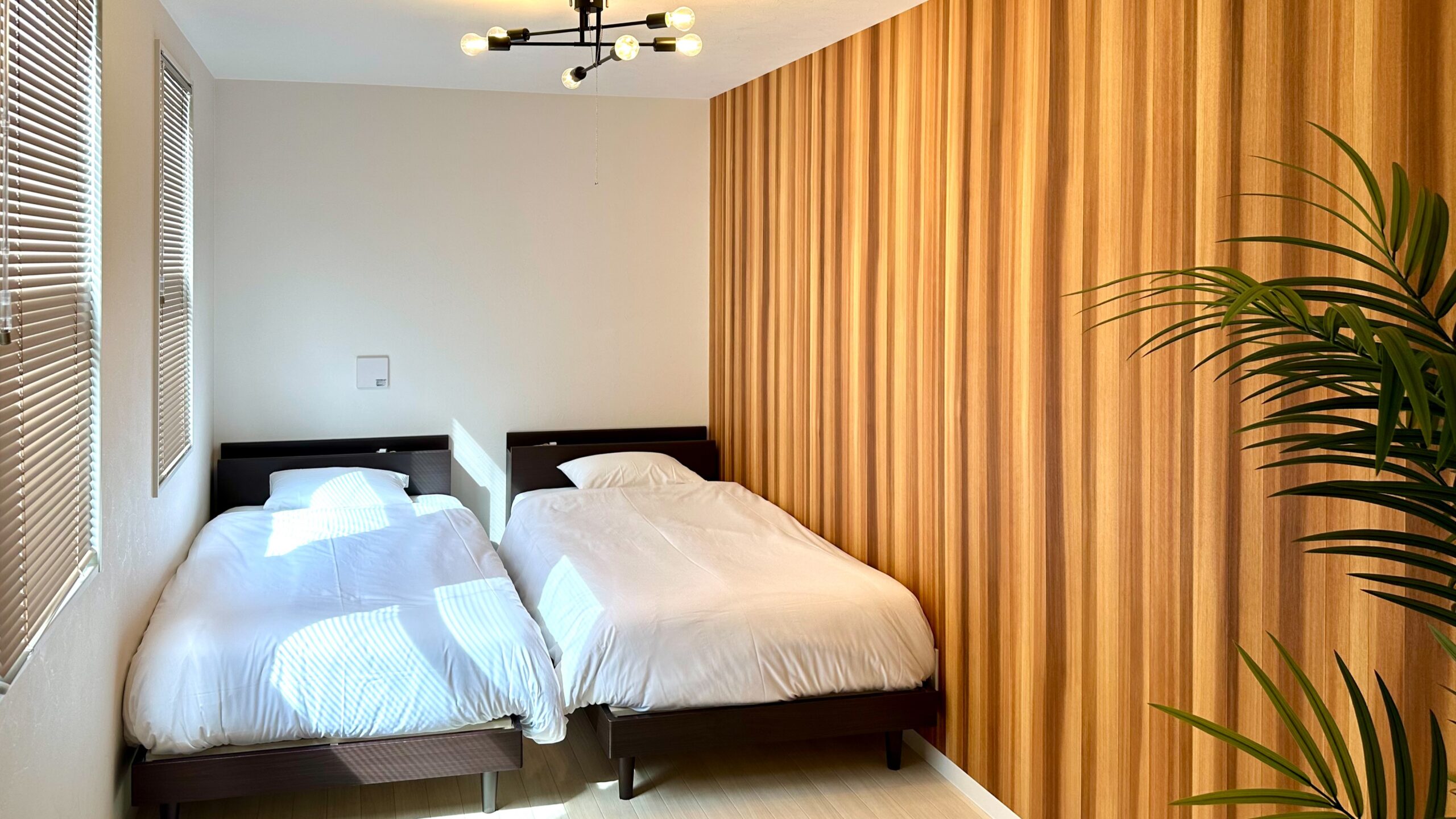 黄色いアクセントクロスが特徴の明るいお部屋 コンパクトなお部屋サイズのため、2名の滞在におすすめです。 作田海岸に近いため、マリンスポーツを楽しみたい方におすすめです。