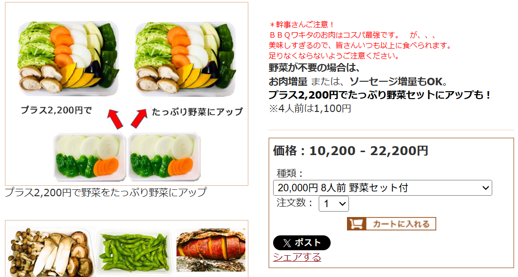 提携サービス「BBQワキタ」の食材を事前にご注文いただけます。