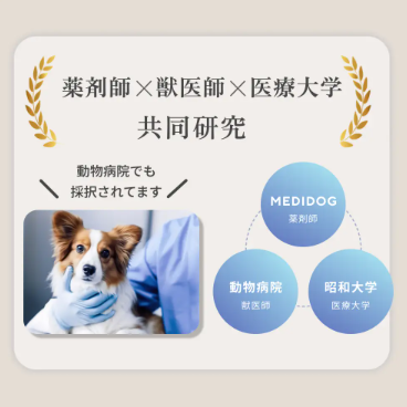 「薬剤師×獣医師×医療大学」という産学医連携体制にて、犬を医学的目線で研究し、確かなエビデンスのもと研究開発をしております。