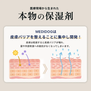 「MEDIDOG」は、肌の負担になる成分を配合せずに、高い保湿力で皮膚バリアを整える成分設計にしました。