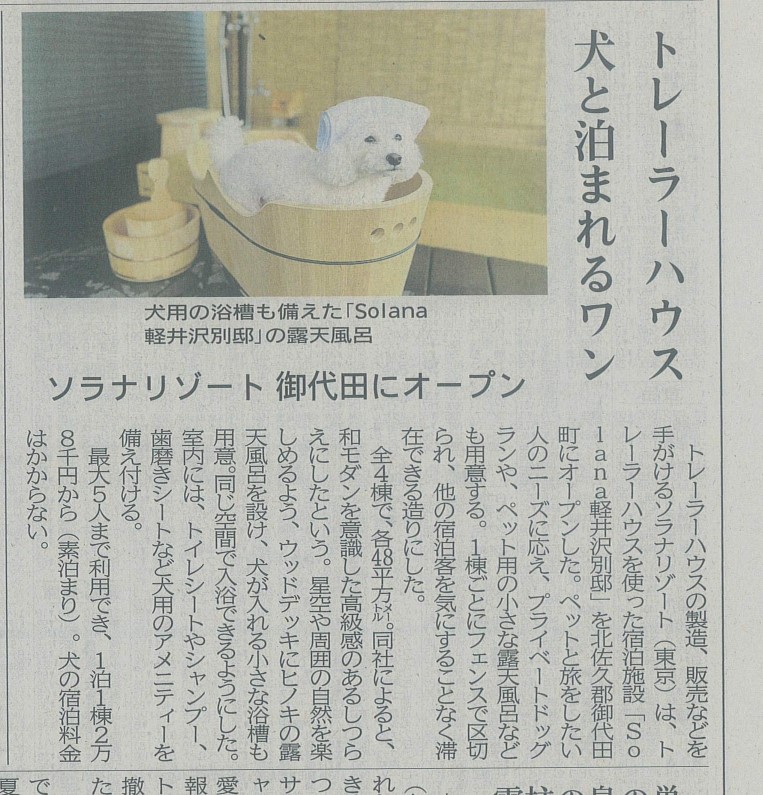 長野県の信濃毎日新聞株式会社が発行する信濃毎日新聞(2024年4月3日発刊)に、Solana軽井沢別邸のオープン記事が掲載されました。