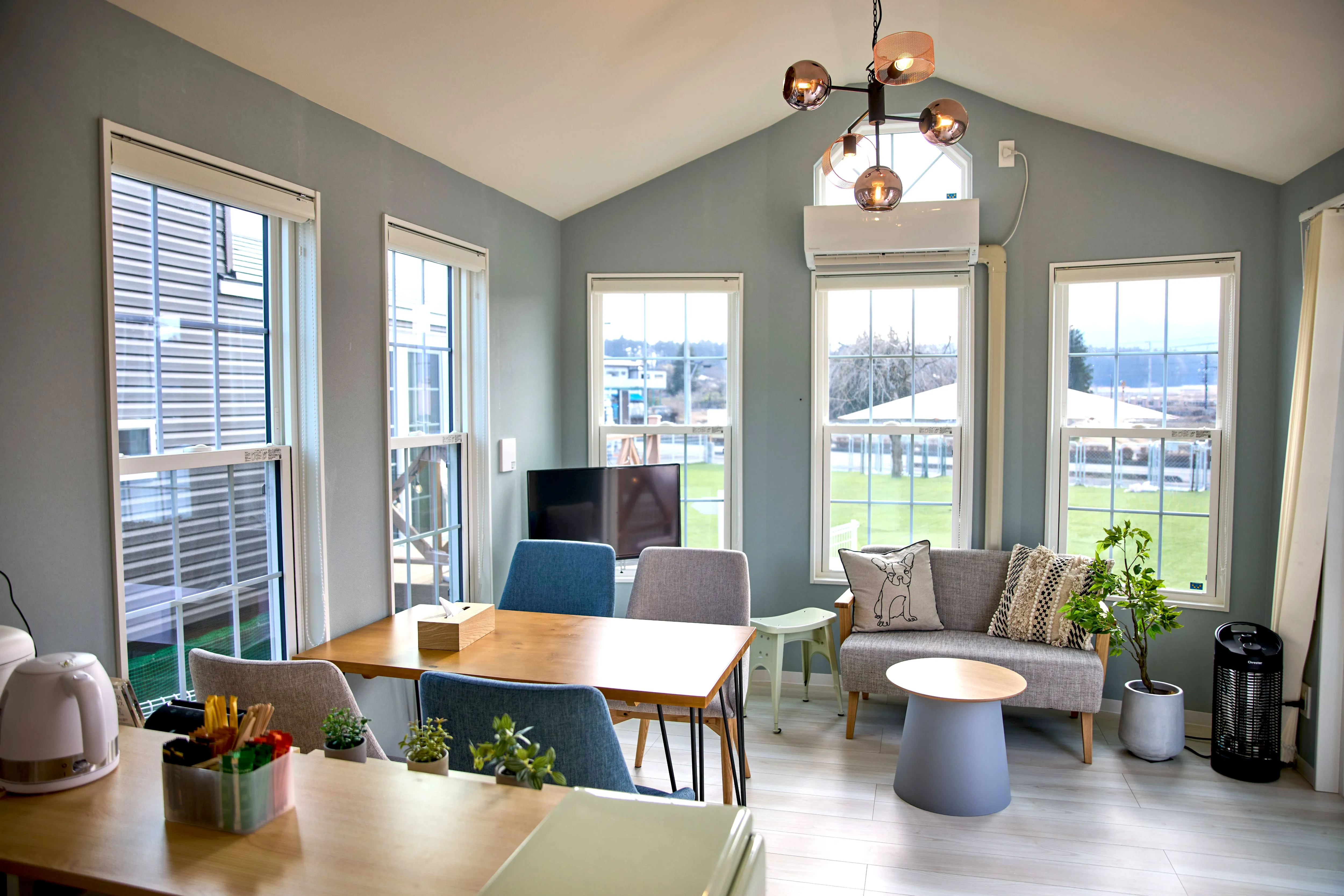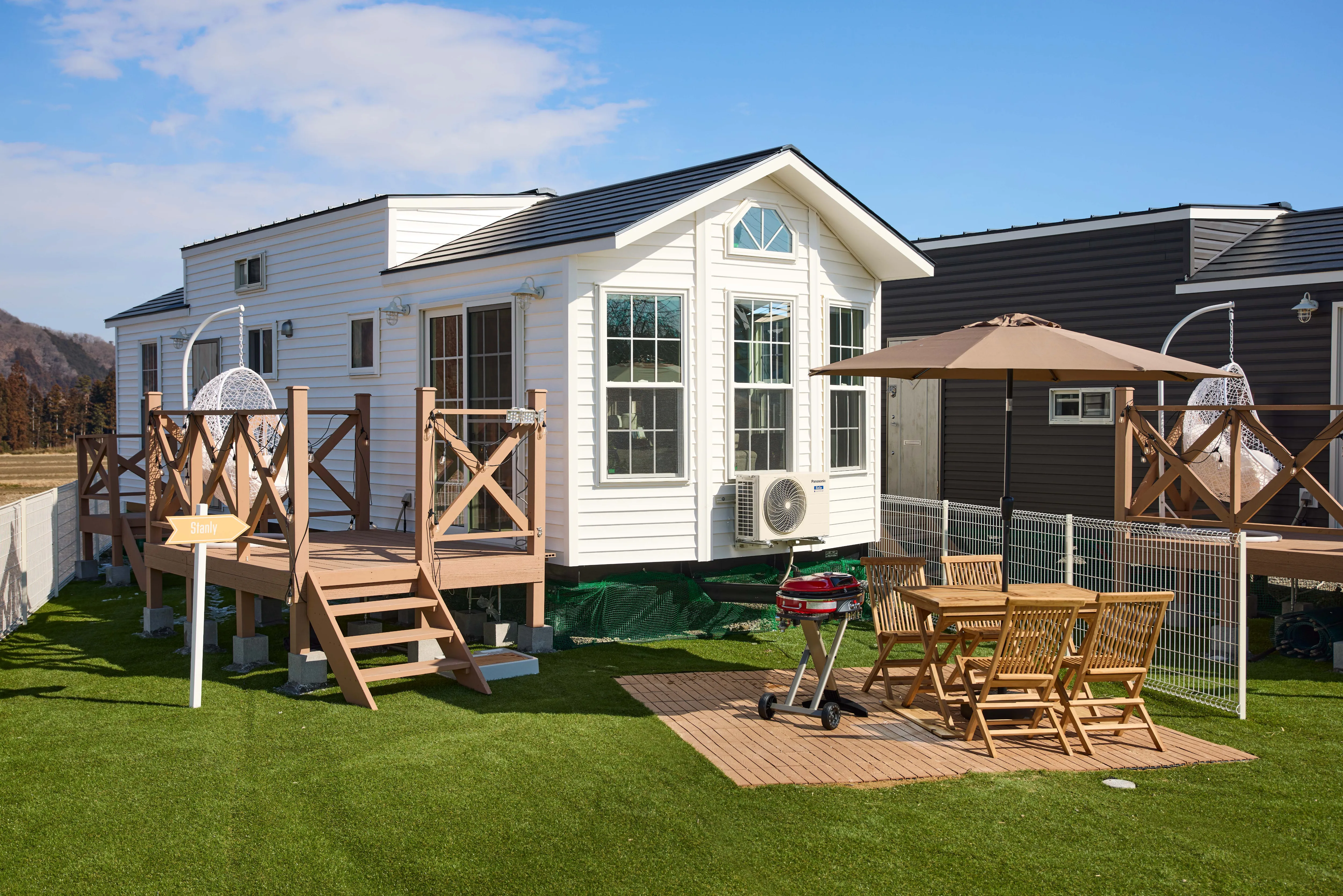 全棟オーシャンビューのトレーラーハウスからは、穏やかな波音と共に朝日や夕暮れの美しい景色を望むことができます。