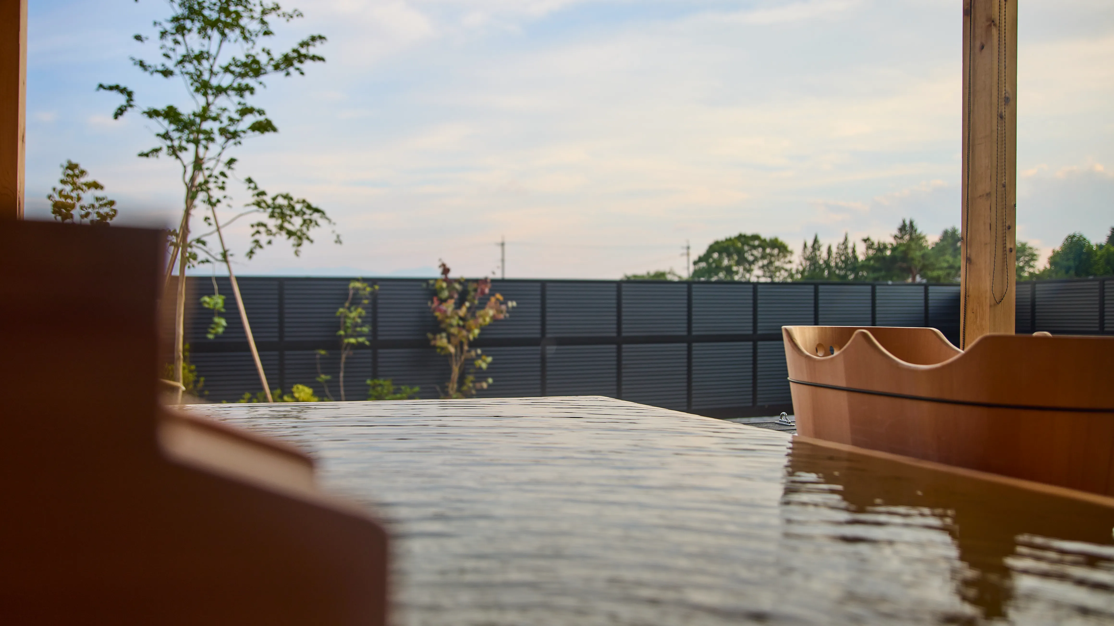 自然に包まれたロケーションを生かし、ウッドデッキには檜の露天風呂をご用意。星空や季節ごとに変化する自然の美しさを望むことができます。