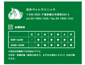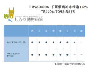 休診日: 日曜午後、祝日 住所:千葉県鴨川市横渚125 電話番号:04-7092-3675 注釈:※休診日や営業時間は変更になる場合があります。必ず施設HPをご確認ください。
